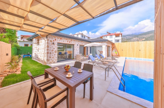 Kalkan Çavdır mahallesinde bulunan 85 metrekarelik 1+1 Taş Villamız, konforlu bir konaklama deneyimi sunmak için tasarlanmıştır. Geniş ve rahat bir king size yatağıyla donatılmış olan villamız, 2 yetişkin ve 1 çocuğun rahatlıkla konaklayabileceği bir ortam sağlar. Ayrıca, koltukta uyumak şartıyla toplamda 3 yetişkinin konaklamasına da olanak tanır.