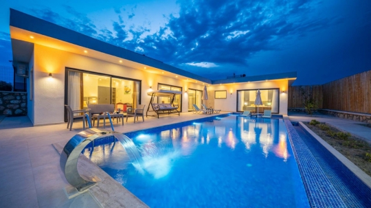 Villa Fury, Kalkan Lavanta bölgesinde yer alan 4 kişilik bahçeli korunaklı ve deniz manzaralı bir villadır. 2021 yılında biten villamız misafirlerimizin hizmetine girmiştir. Geniş ve ferah bir oturma alanına sahip olan villamız da iki ebeveyn yatak odası bulunmaktadır. Havuz başında yer alan ana yatak odamızdan havuza girilebilmektedir. Aynı zamanda jakuziye de sahiptir odamız. Her odanın kendine ait WC ve Banyosu vardır. Merkeze ve sahile 3-4 dakika mesafededir araç ile. Özel korunaklı bir araç park yerine sahiptir. Havuz terasında yer alan çim alan çocuklu misafirlerimiz için tasarlanmıştır.