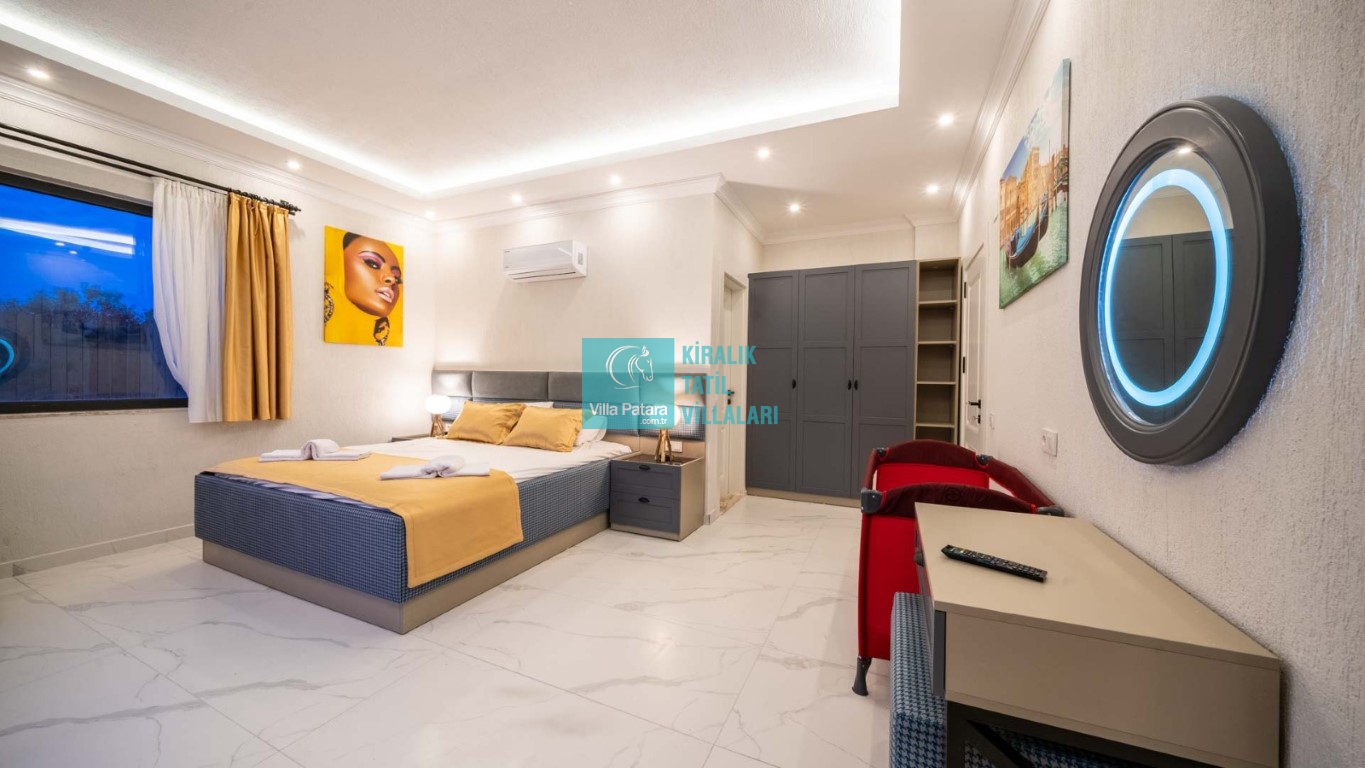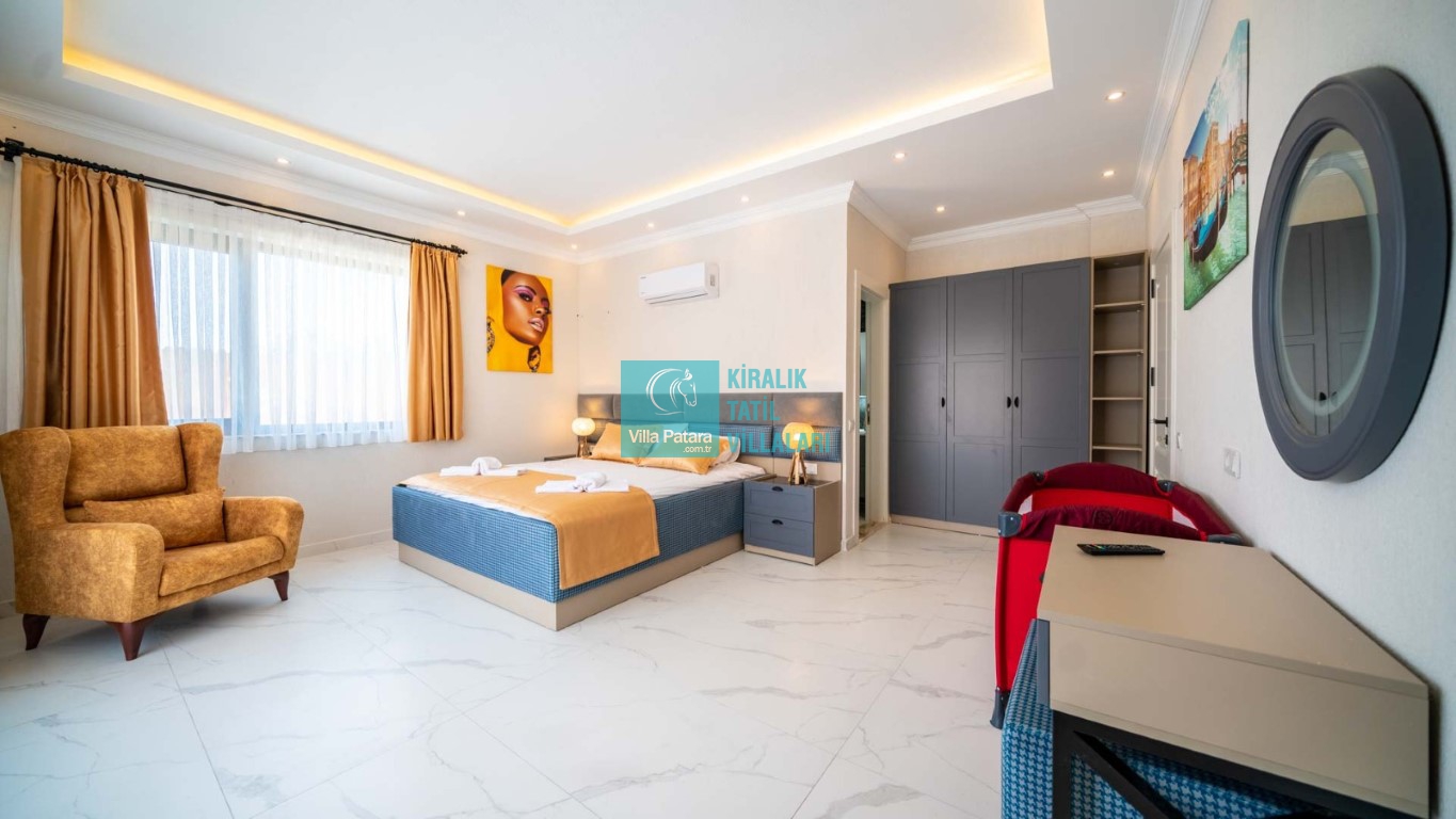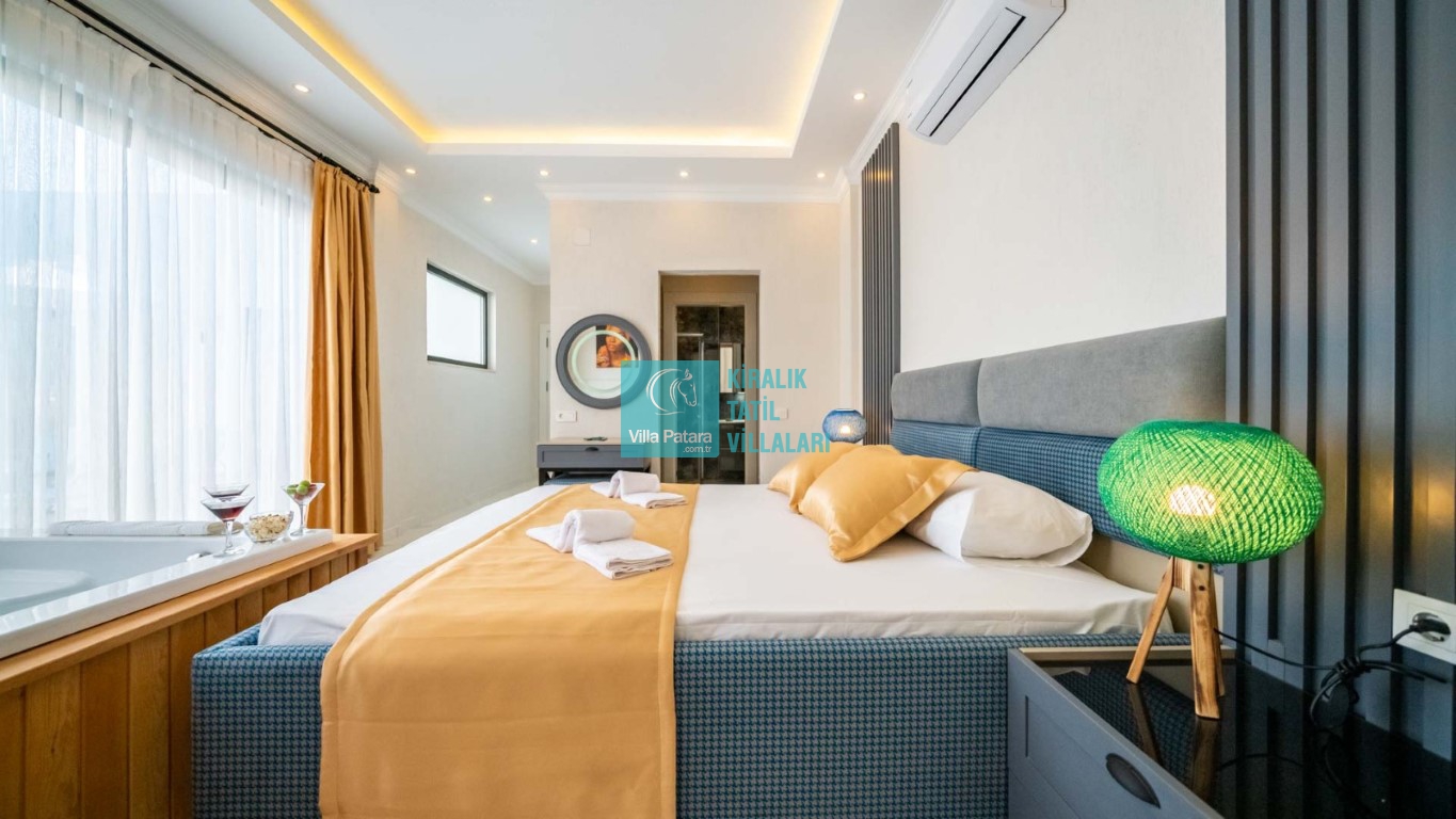 1.Yatak Odası: 1 adet çift kişilik yatak, elbise dolabı, komodin, makyaj masası , klima, jakuzi ve banyo-WC bulunmaktadır.