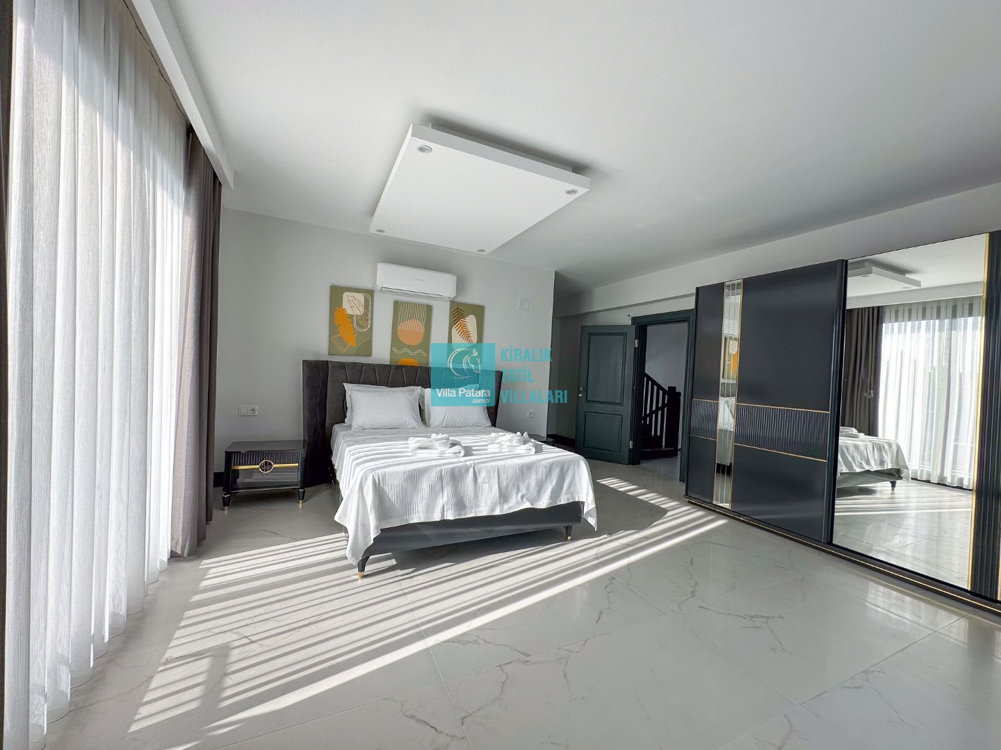 Toplam 4 yatak odasından oluşmuş, 8 kişi konaklama kapasitesine sahiptir. Geniş aileler ve kalabalık arkadaş grupları için oldukça idealdir. Oldukça şık ve modern bir şekilde döşenmiş olan villamızda misafirlerimiz için her şey düşünülmüştür. Havuz terasında bulunan şezlonglarda güneşlenebilir, bahçe masasında muhteşem yemekler yiyebilir, salıncakta sallanıp keyifli dakikalar geçirebilirsiniz.