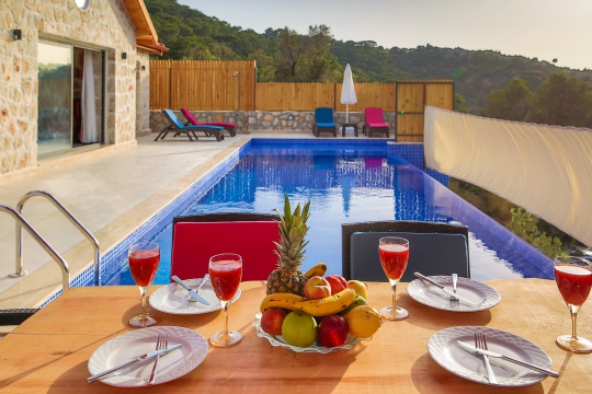 Villamızın havuzu korunaklı olup dışarıdan gözükmemektedir. Muhafazakar aileler için son derece uygun bir villamızdır.