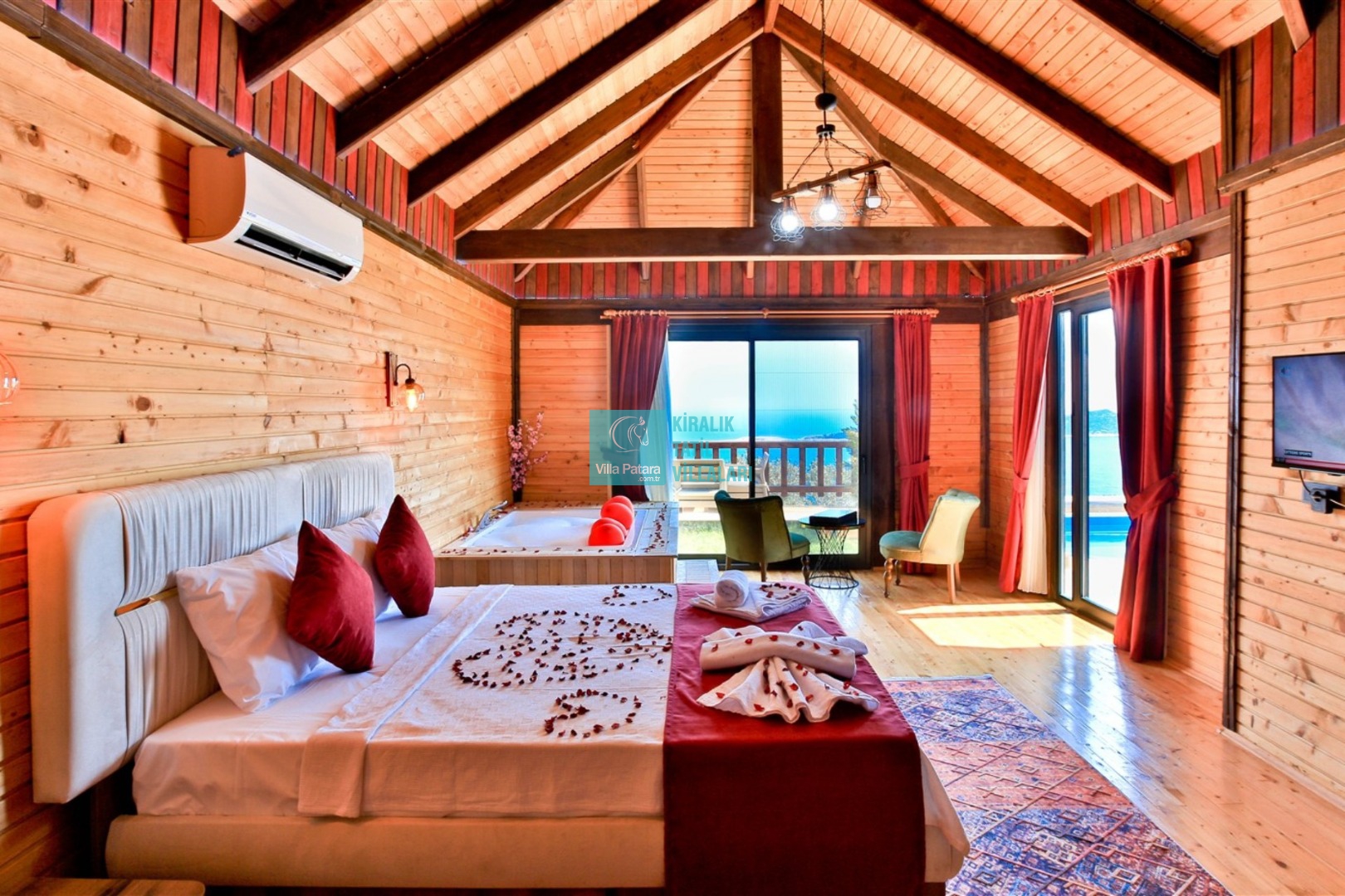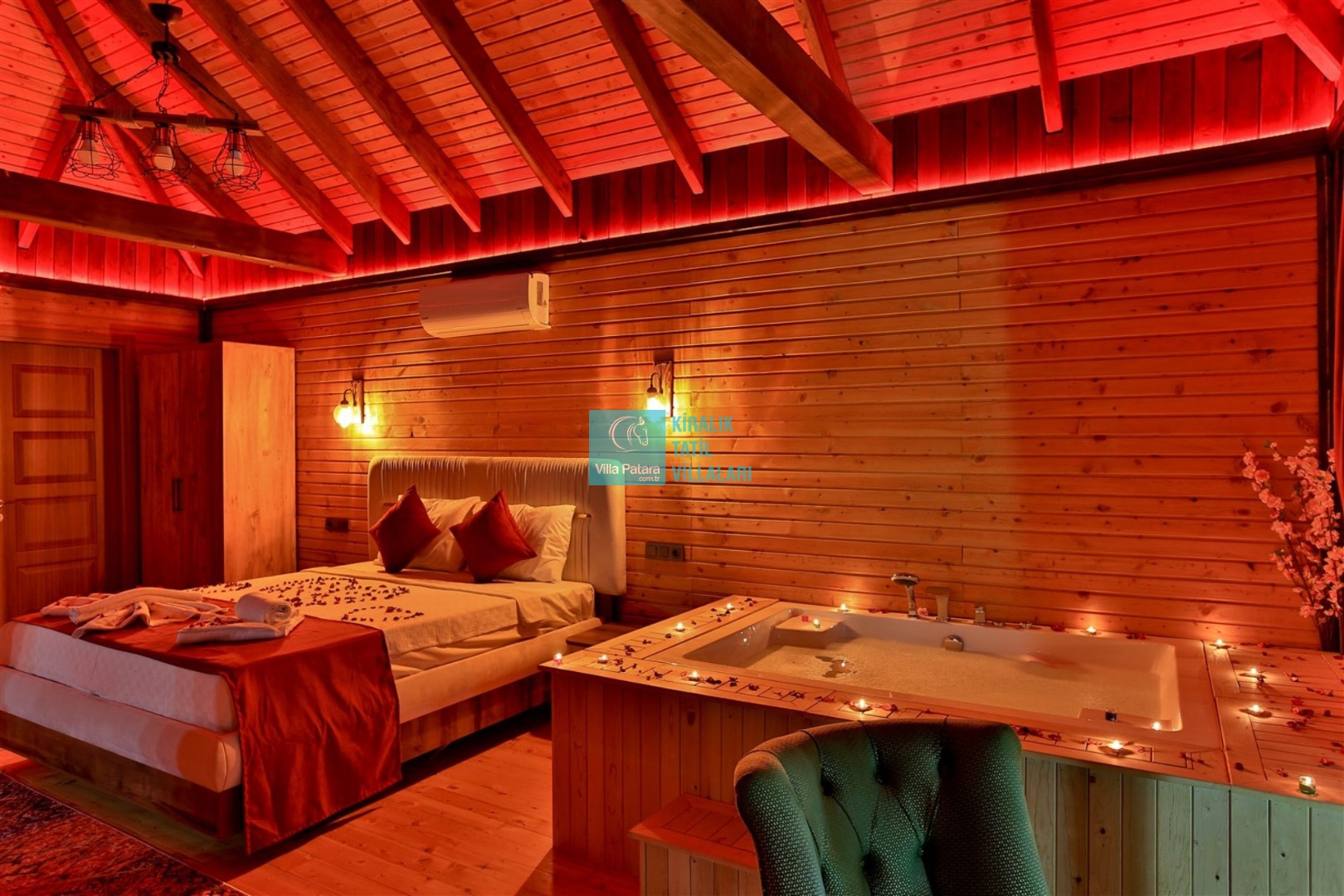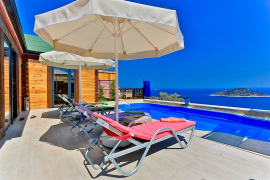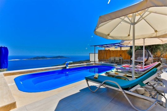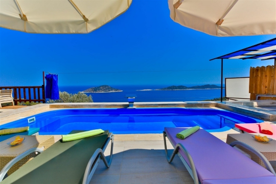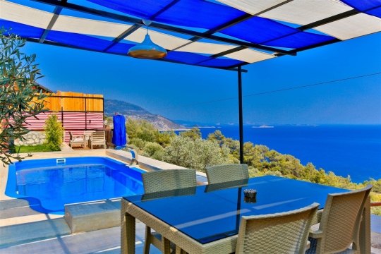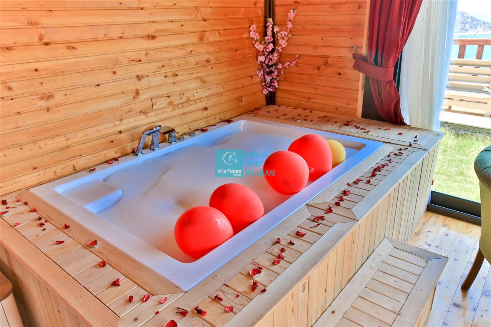Villamızın havuz ve bahçe kısmı korunaklı olup deniz manzaralı dır.Muhafazakar çiftlerin havuz keyfini rahatça çıkarması için dizayn edilmiş olan villamız dışarıdan görünmemektedir, ayrıca villamızda bulunan jakuzi sayesinde ruhunuzu ve bedeninizi dinlendirme fırsatı bulacaksınız.