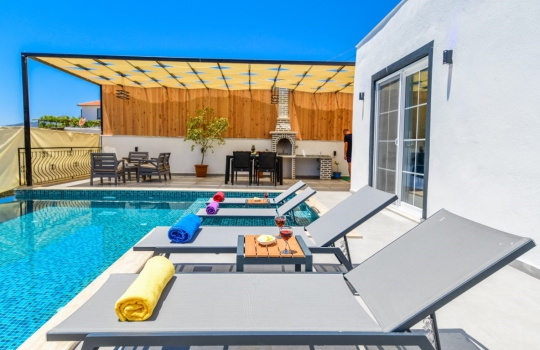 Villa Gıbrıs, Kalkan Ulugöl Mevkii'nde bulunmaktadır. 2 yatak odalı, 4 kişilik bir tatil villasıdır. Villamız, içerisinde çocuklu misafirlerimize oldukça hitap edecek olan sığ havuz bulunmaktadır. Müstakil villamız merkeze yakın olup araç ile kolay bir ulaşım sağlanmaktadır. Muhafazakar villamızın bahçe alanı dışarıdan görünmeyecek şekilde tasarlanmış olduğundan gönül rahatlığıyla vakit geçirebilirsiniz.