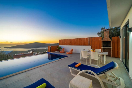 Villa Glorya , Kalkan Kördere bölgesinde yer alan eşsiz güzellikteki deniz ve doğa manzarasına ev sahipliği yapan villamız 2 yatak odalı ve 4 kişilik konaklama kapasitesine sahip , kapalı havuzlu balayı villası. Kalkan'ın en özel manzarasını keyifle seyredebileceğiniz villamız tüm bölgeyi gün boyu kuş bakışı seyredebilmenize imkan tanır. Villa Glorya konukları için özenle tasarlanmış ve dekore edilmiştir. Villamızın içerisinde jakuzi bulunmaktadır. Bunun yanı sıra sizlere lüks ve konforlu bir tatil deneyimi sunan Villa Glorya ' nın, şezlong, oturma köşesi, yemek masası ve barbekü alanı yer almaktadır.