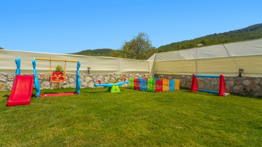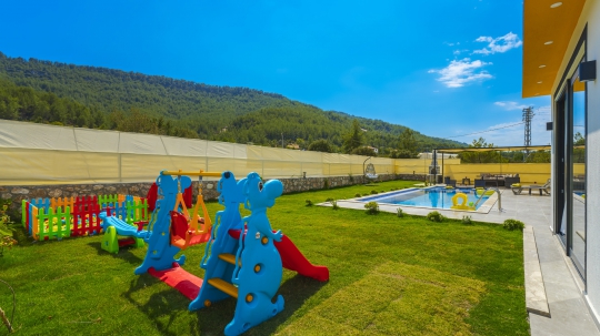 Havuz ve Bahçe: Havuz ve bahçesi korunaklı olup dışarıdan gözükmemektedir. Özel yüzme havuzu, şezlong, şemsiye, salıncak, çocuk oyun parkı yemek masası ve barbekü bulunmaktadır.