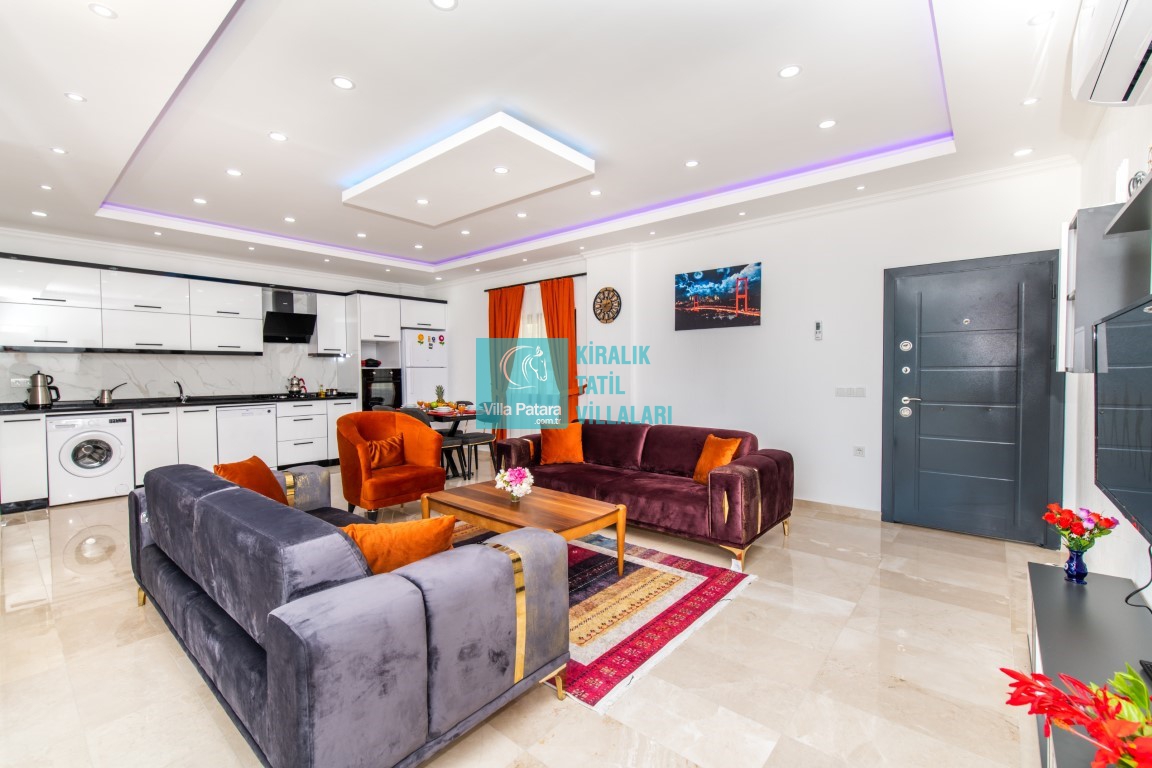 Salon: Amerikan mutfak olarak dizayn edilmiştir, oturma grubu, TV, yemek masası bulunmaktadır.