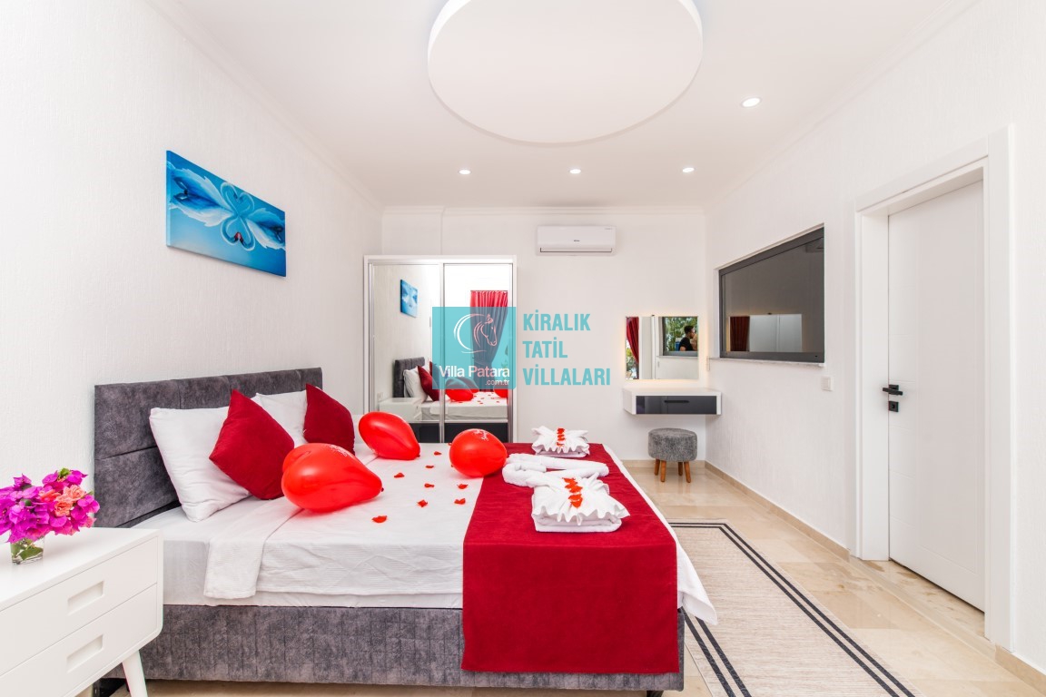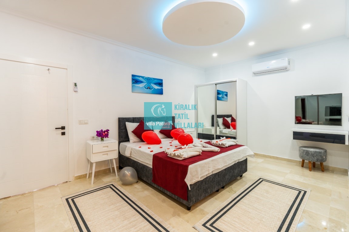 1. Yatak Odası : 1 adet çift kişilik yatak, klima, komodin, makyaj masası, elbise dolabı, jakuzi ve banyo tuvalet bulunmaktadır.