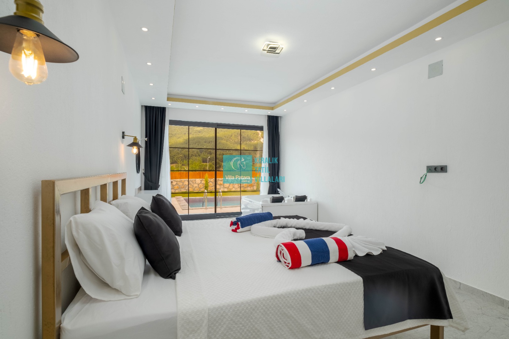 1. Yatak Odası : 1 Adet çift kişilik yatak , komodin , makyaj masası , elbise dolabı , jakuzi , klima ve banyo & tuvalet bulunmaktadır.