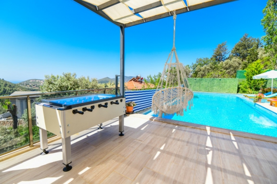 Villamızın özel yüzme havuzunun korunaklı bir şekilde tasarlanması özellikle muhafazakâr ailelerimizin memnuniyeti için yarar sağlamaktadır.