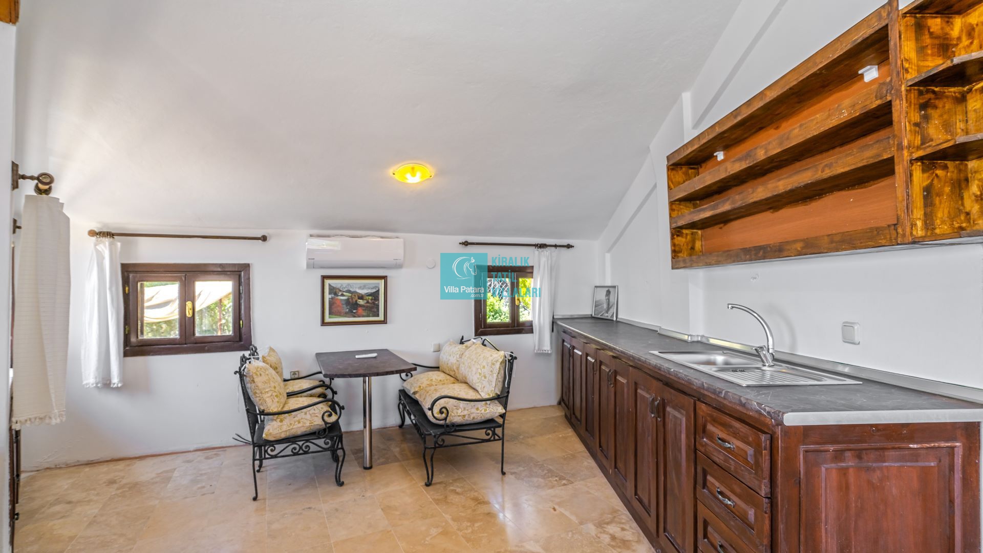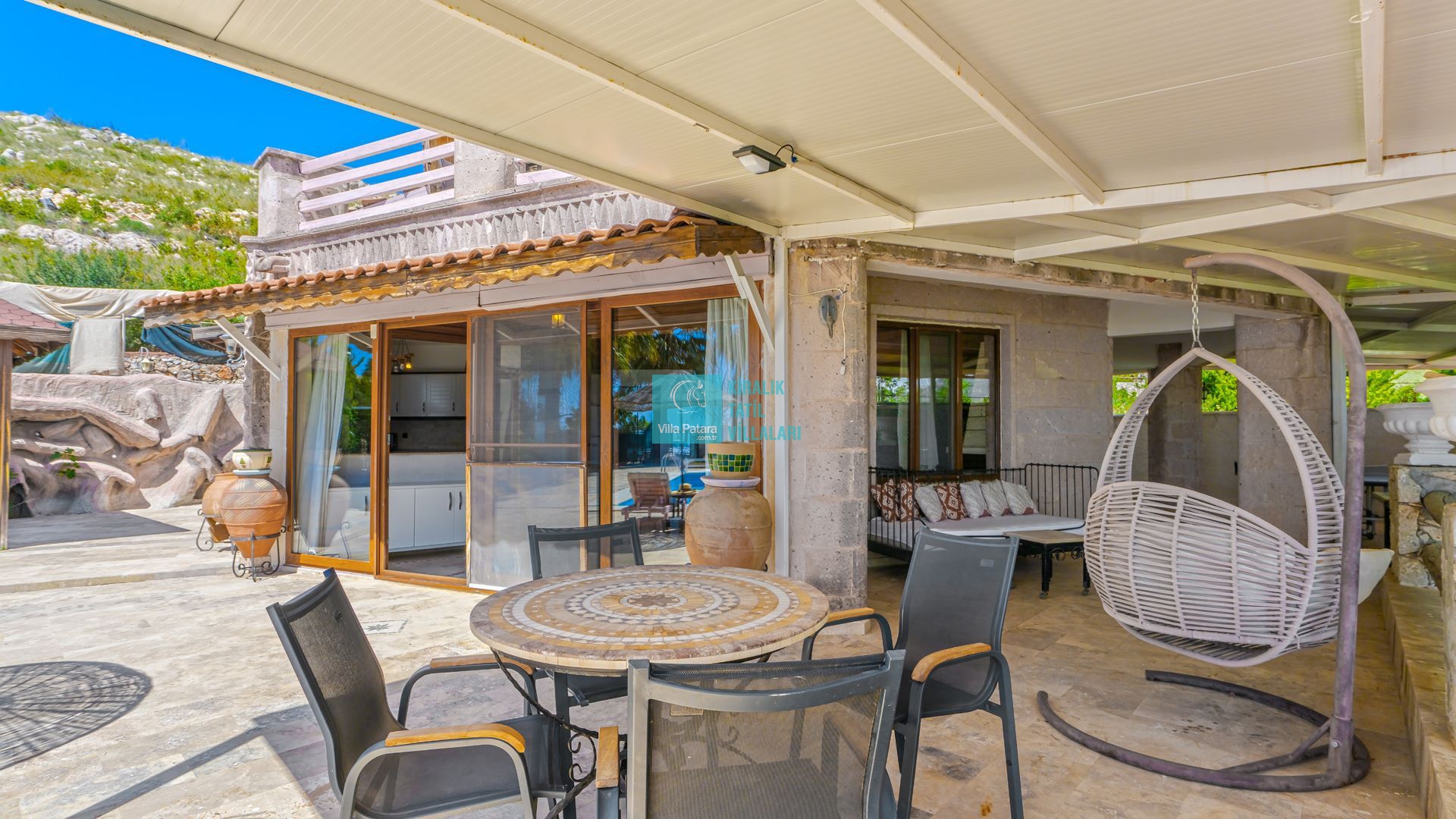 Kalkan / Üzümlü’de bulunan Villa Gül Evi'nin benzersiz özelliklerinden biri, ferah bir verandaya sahip olmasıdır. Bu güzel veranda, sizlere özgürce vakit geçirebileceğiniz geniş bir alan sunar. Günün yorgunluğunu atabileceğiniz, açık havada keyifli bir akşam yemeği yiyebileceğiniz veya sadece serin bir içecek eşliğinde dinlenebileceğiniz bir ortam sağlar.