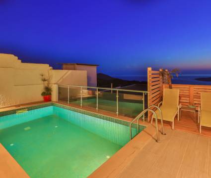VİLLA GUSTO 1 Kalkan'ın Kördere mevkiinde bulunan muhteşem deniz manzarasına sahip olan kiralık villamız 1 yatak odalı 2 kişilik konaklama kapasitelidir. Havuz terası korunaklı villamız balayı çiftlerimiz için uygundur. Yatak odasında özel ısıtmalı jakuzi yer almaktadır. Villamızın tatlı ve modern tasarımı ile sizlere kapılarını açmaktadır.