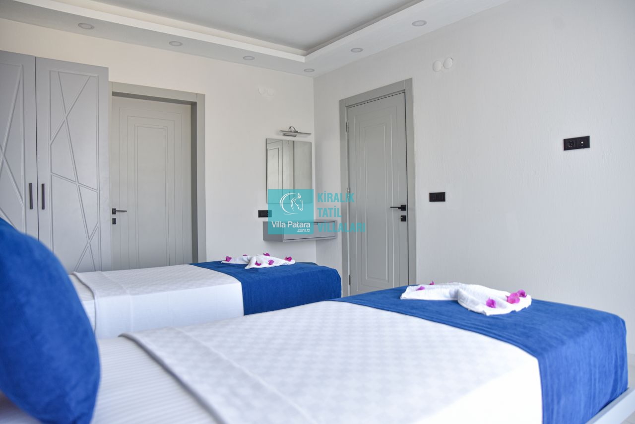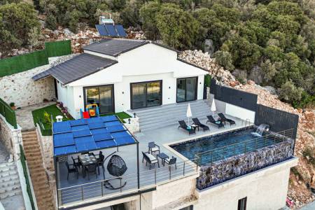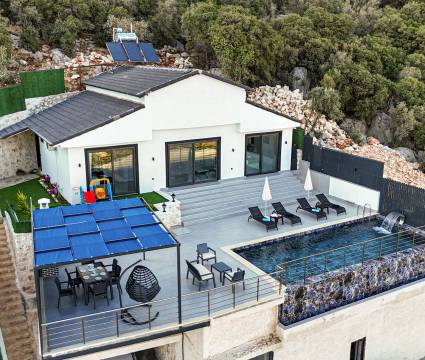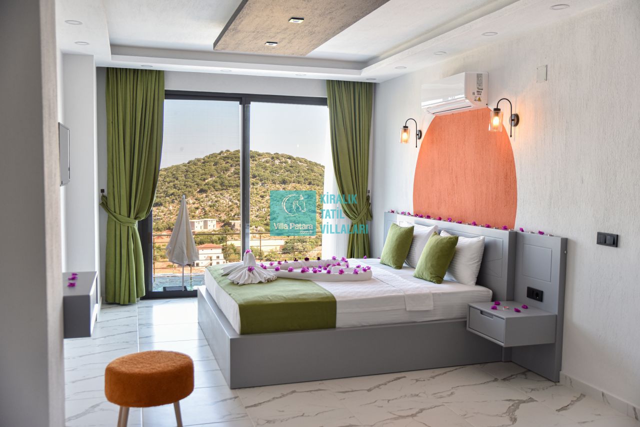 Villa Güzel, Kaş'ın Belenli mahallesi Sısla mevkiinde, doğa ve deniz manzaralarının kucak açtığı bir konumda yer alıyor. Bu modern ve konforlu villa, iki yatak odası ve dört kişilik konaklama kapasitesi ile hem balayı çiftleri hem de çekirdek aileler için mükemmel bir seçenek sunuyor. Villanın bir yatak odasında yer alan jakuzi, yıl boyunca biriken yorgunluğu atmanız için ideal bir ortam sağlar. Yeşilliklerle çevrili bu huzurlu kaçamağınız, sessizlik ve sakinliği sevenler için kusursuz bir tatil imkanı sunar. Villa Güzel, konforlu ve şık döşenmiş mekanları, geniş terası ve doğa ile iç içe olan konumuyla, unutulmaz anlar yaşamanız için her detayın düşünüldüğü bir tatil deneyimi vaat ediyor. Gün boyu doğanın sesleriyle çevrili bu özel villada, sevdiklerinizle birlikte huzurlu bir tatil geçirebilirsiniz.