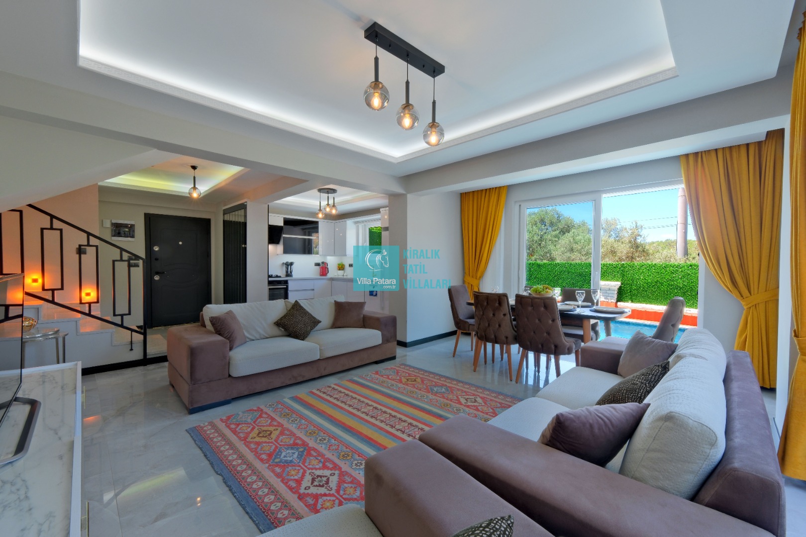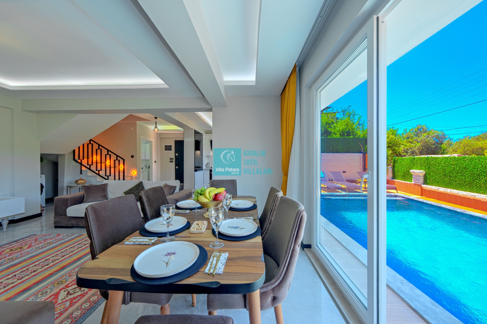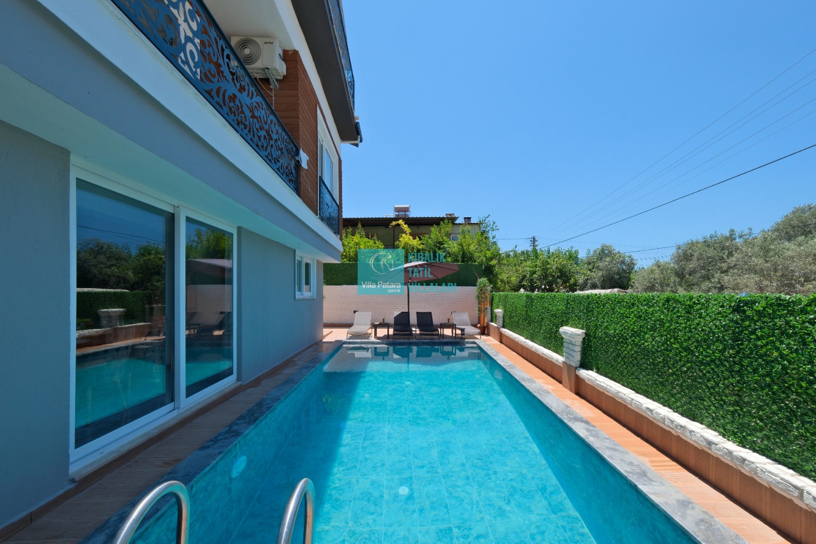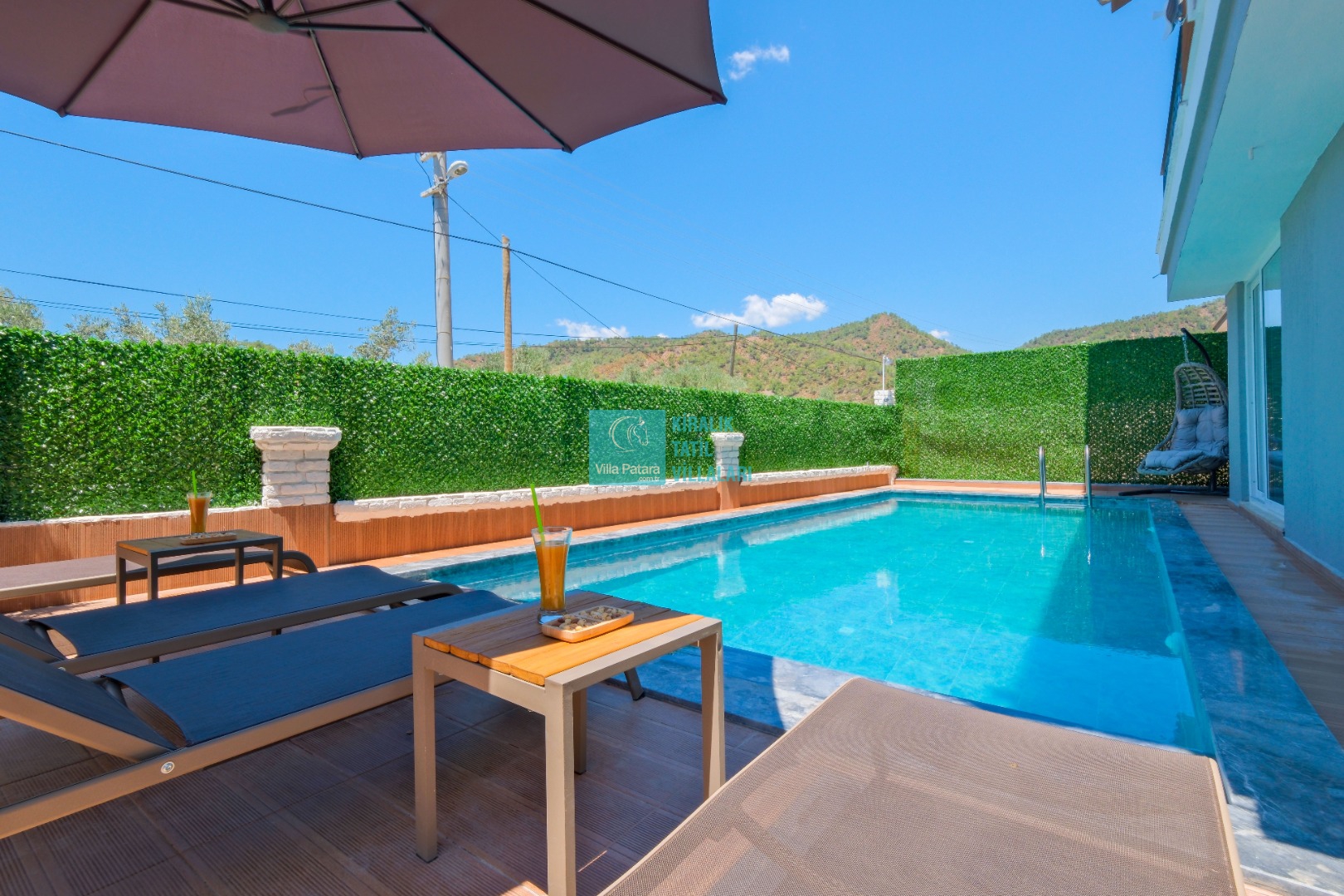 Villa Halis'in en dikkat çekici özelliklerinden biri, korunaklı bir havuza sahip olmasıdır. Bu özel havuz, size özel bir alan sunarak serinleme ve eğlence imkanı sağlar. Ayrıca geniş bir veranda da bulunmaktadır, burada açık havada dinlenebilir ve manzaranın tadını çıkarabilirsiniz. Garanti Villam kalitesiyle sunulan Villa Halis, Fethiye kiralık villa seçenekleri arasında öne çıkan bir seçimdir. Tatiliniz boyunca ihtiyaç duyabileceğiniz tüm olanakları sağlayarak konforlu bir tatil geçirmenizi amaçlar. Fethiye Çalış’da bulunan bu villa, kalabalık ailelere uygun bir yapıya sahiptir. Geniş ve ferah iç mekanlarıyla ailenizle birlikte unutulmaz anılar biriktirebilirsiniz.