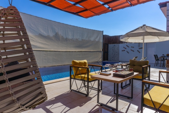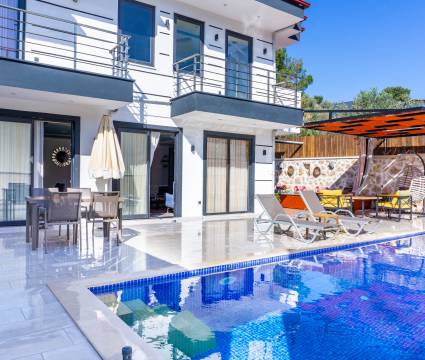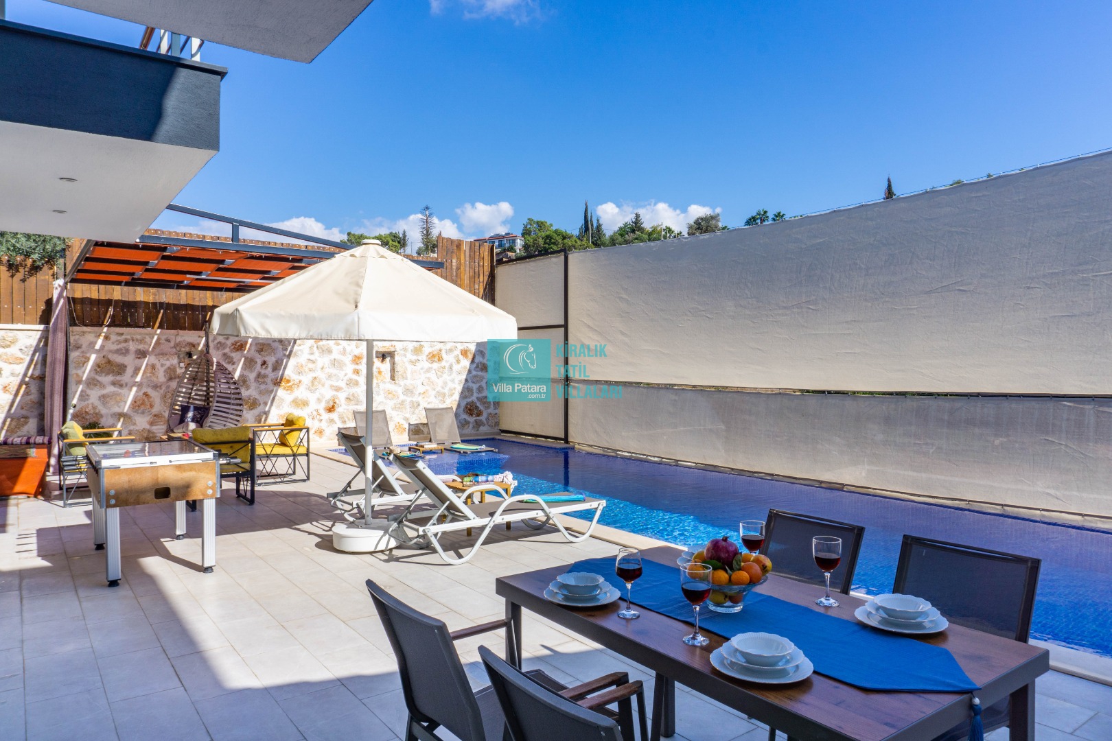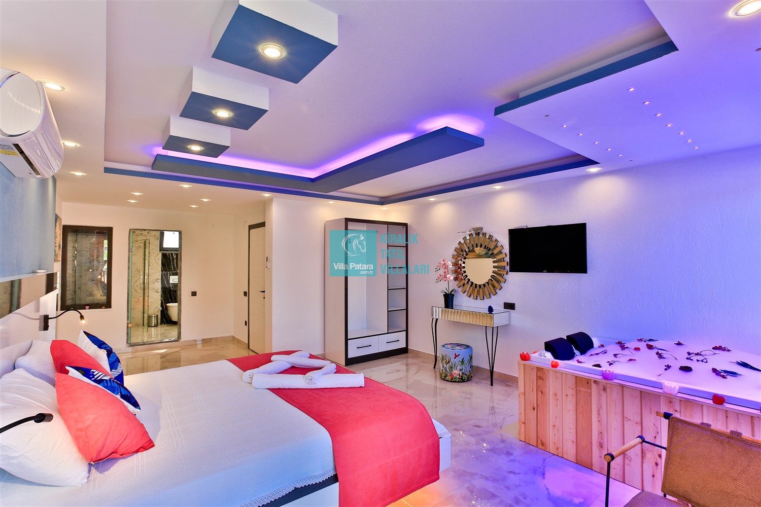Kalkan Patara mevkisinde bulunan kiralık balayı villası, merkeze yürüme mesafesinde bir tatil isteyen çiftlerimiz için oldukça uygun bir seçenektir. Muhafazakar villalar ve Balayı villaları kategorisinde yer alan villamız, 2 yatak odası ile 5 kişilik konaklama kapasitesine sahiptir. Havuzu korunaklı ve bahçesi dışarıdan görünmeyen Villa Hanedan Duo, mahremiyete önem veren ailelerimiz için huzur dolu bir tatil fırsatı sunuyor. Ayrıca yatak odasında misafirlerimizin rahatlaması için 2 kişilik jakuzi konforu da sağlamaktadır.