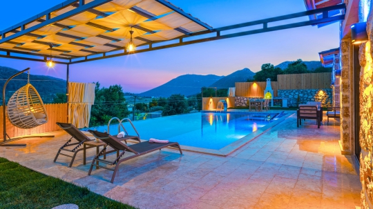 Villamız doğa içinde olup havuz ve bahçe kısmı korunaklıdır, havuz keyfini rahatça çıkarmanızı sağlar ve villamızda bulunan jakuzi sayesinde ruhunuzu ve bedeninizi dinlendirme fırsatı bulacaksınız. Modern dizayna sahip olan villamız bulunduğu konum itibari ile muhteşem doğa manzarasına sahiptir. Geniş bahçe alanına sahip olup çocuklu aileler için en ideal villa seçeneklerinden biridir.