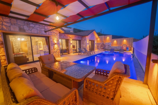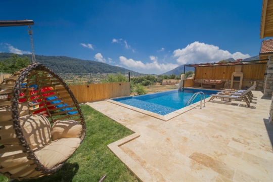 Villamız doğa içinde olup havuz ve bahçe kısmı korunaklıdır, havuz keyfini rahatça çıkarmanızı sağlar ve villamızda bulunan jakuzi sayesinde ruhunuzu ve bedeninizi dinlendirme fırsatı bulacaksınız. Modern dizayna sahip olan villamız bulunduğu konum itibari ile muhteşem doğa manzarasına sahiptir. Geniş bahçe alanına sahip olup çocuklu aileler için en ideal villa seçeneklerinden biridir. Ailenizle veya arkadaş gruplarınızla güzel bir tatil geçirmeniz için özenle dizayn edilmiş villamıza siz değerli misafirlerimizi beklemekteyiz.