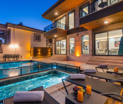 Kaş'ın en huzurlu atmosferine sahip Çukurbağ Köyü’nde yer alan Villa Heri, merkeze sadece 7 dakika uzaklıkta bir mesafeye sahip. Adını yerel bir yaşam formundan alan Villa Heri, ‘sincap’ anlamına geliyor. Sizleri rüya gibi bir tatil deneyimiyle karşılamak için hazır olan bu eşsiz villa, 6 kişilik kapasitesiyle dostlarınız ve ailenizle unutulmaz anlar yaşamanız için ideal bir seçenek sunuyor. Villanın geniş iç mekanları, üç zarif oda ve şık tasarımıyla bir araya gelerek size konforlu bir konaklama sunuyor. Her oda özenle dekore edilmiş, sıcak bir atmosfer yaratmak üzere tasarlandı. Yemyeşil doğa manzarası, odaların her birinden içeri giren doğal ışıkla bütünleşirken, güne doğanın kucakladığı eşsiz bir manzara ile başlayabilirsiniz. Çukurbağ’ın göz alıcı doğasına sonsuzluk havuzunda eşlik edebilirsiniz. Villa Heri, günlük yaşamın telaşından uzaklaşıp ruhunuzu dinlendirmeniz için sizi unutulmaz bir tatil kaçamağına davet ediyor…