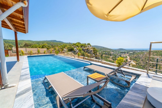 Villa HERMES size doğanın içinde dağ, orman, uzaktan deniz manzarasıyla uyanacağınız huzurlu bir tatil imkanı sunar. Patara kum tepelerine 3km, Patara plajına 4km, Kalkan merkeze 2km mesafededir. İhtiyaç duyacağınız her şeye sahip olan mutfağıyla sizi evinizde hissettirir. Oldukça geniş ve güzel bir havuza sahip olan Villa Hermes ,3 yatak odalı 6 kişi konaklama kapasitesine sahiptir......Sadece Ebeveyn yatak odasında tuvalet banyo bulunmaktadır ve ekstradan salonda ortak kullanım tuvalet banyo bulunmaktadır. Doğa içinde sessizlik ve sakinlik düşünen ailelerin vazgeçilmezi olan bu villamız siz değerli, misafirlerimizi beklemektedir..