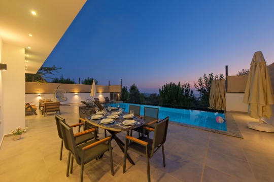 Villa Hesperos, 6 kişilik kapasiteye sahip villada 3 yatak odası yer alıyor. Villanın birer banyosu ve jakuzisi mevcut. Açık mutfağı ve kendine ait bahçesinde bir havuzu var. Mutfağında bulaşık makinesi, buzdolabı, ankastre fırın, tost makinesi ve mutfakta ihtiyaç olan hemen hemen bütün gereçler bulunuyor. Barbekü, masa, sandalyeler, şezlonglar ve şemsiyeler bahçe keyfini sınırsız yaşamanıza imkan tanıyor. Salonunda oturma grubu, televizyon, eşyalar bulunurken, tüm odalar için ayrı klima imkanı var.