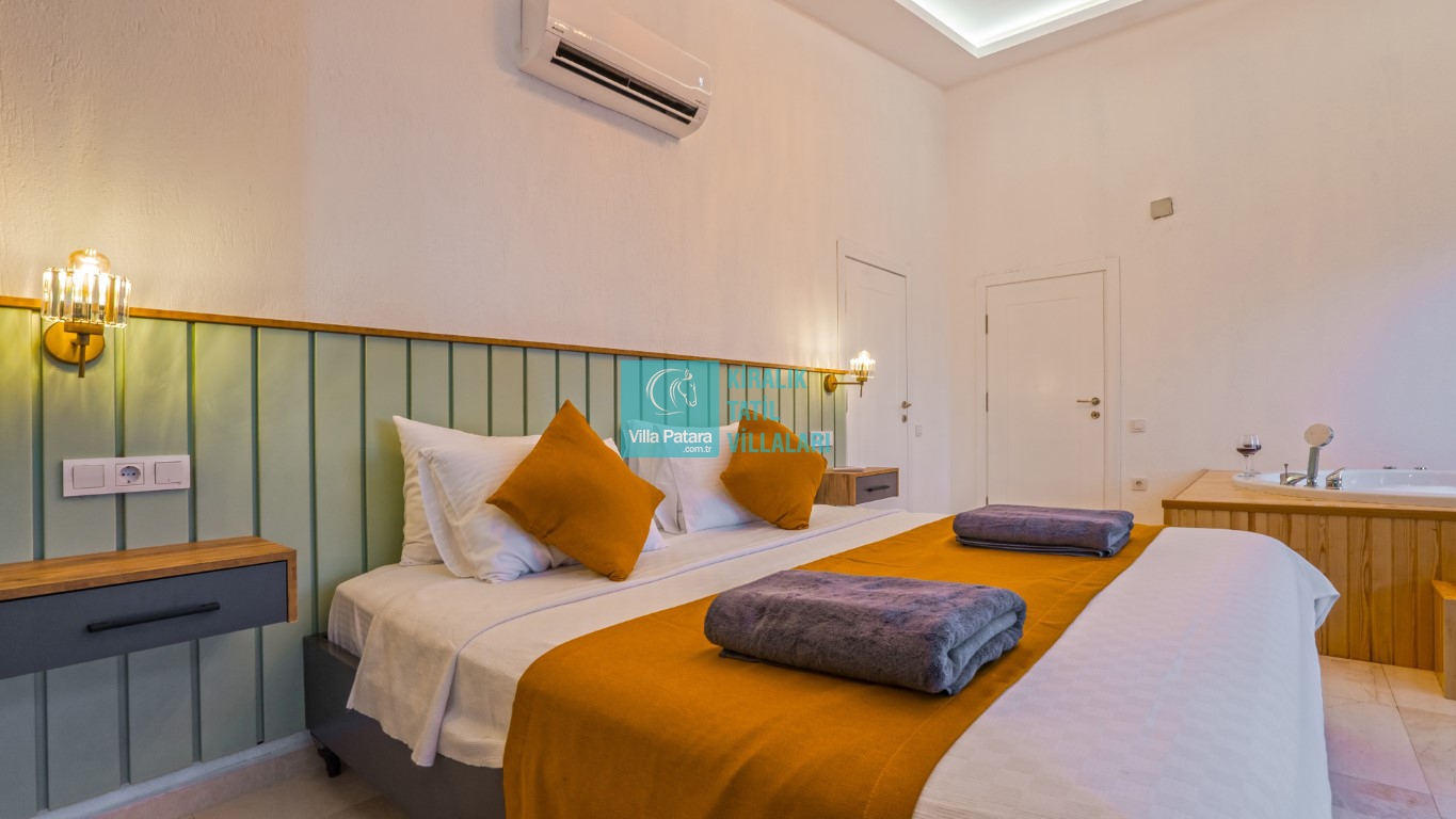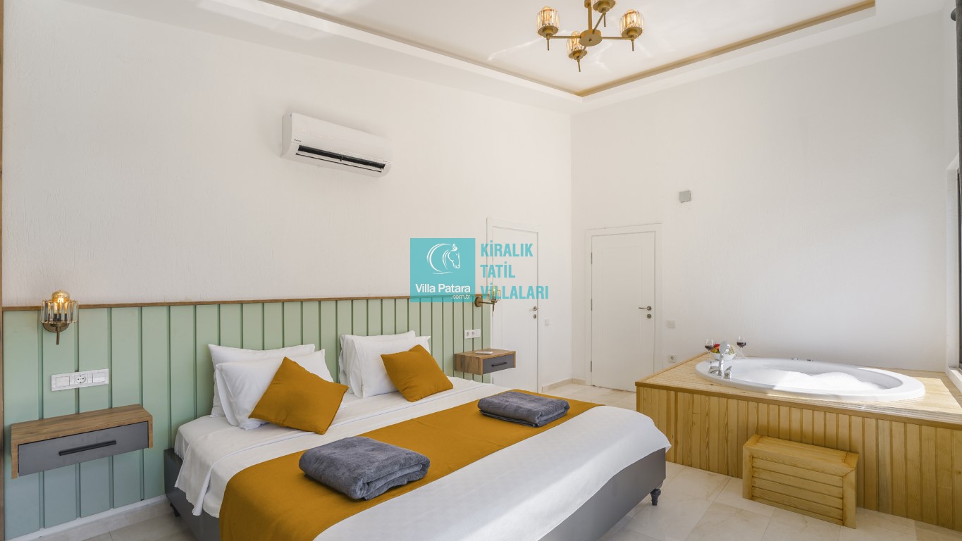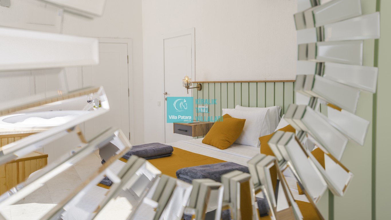 1. Yatak Odası : 1 adet çift kişilik yatak, klima, komodin, makyaj masası, elbise dolabı, jakuzi ve banyo tuvalet bulunmaktadır.