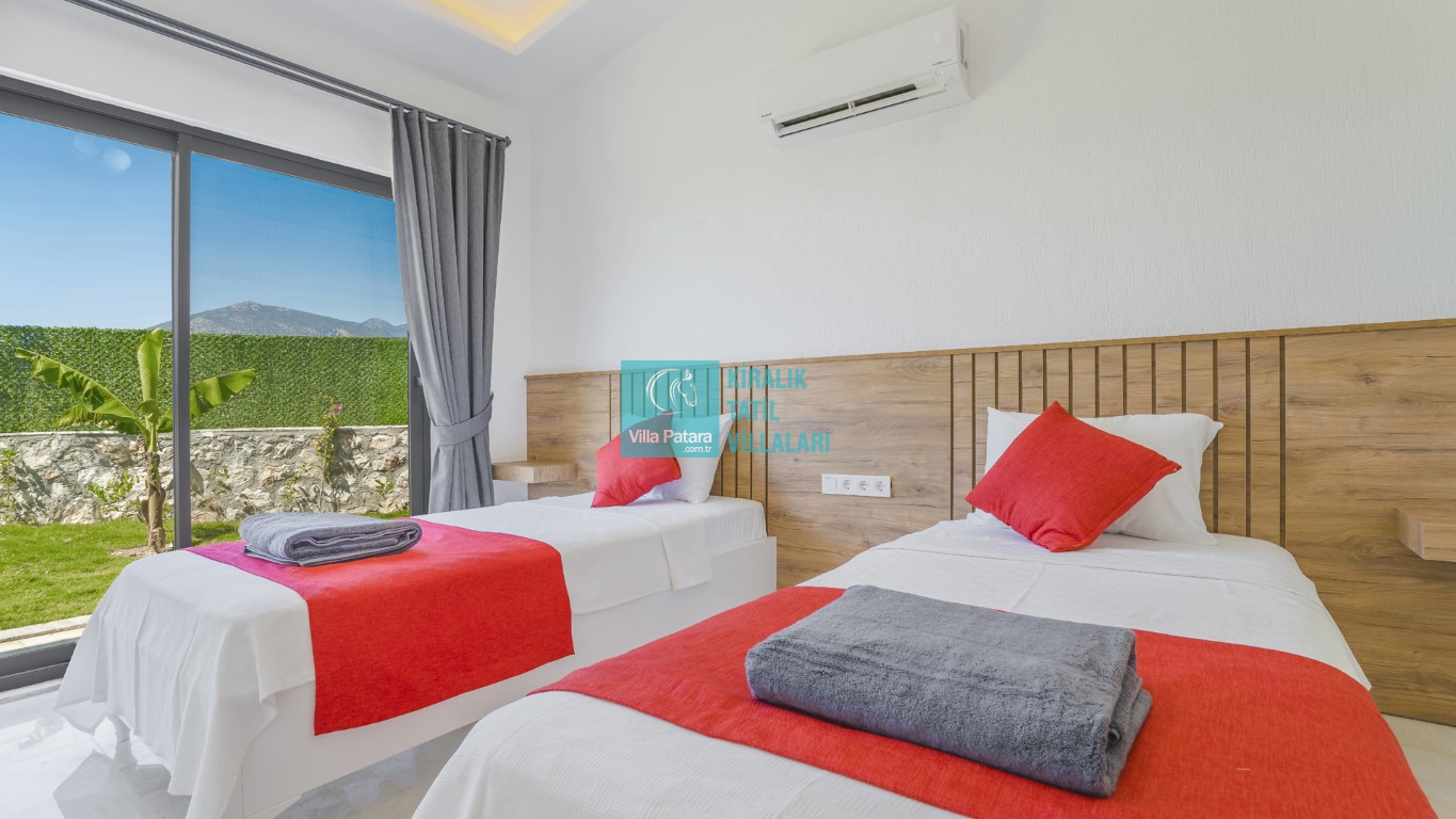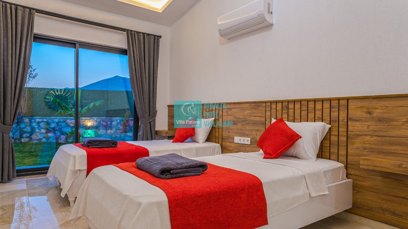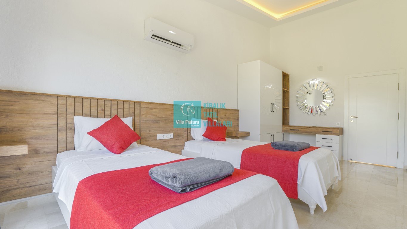 2. Yatak Odası : 2 adet tek kişilik yatak, klima, komodin, makyaj masası, elbise dolabı ve banyo tuvalet bulunmaktadır.