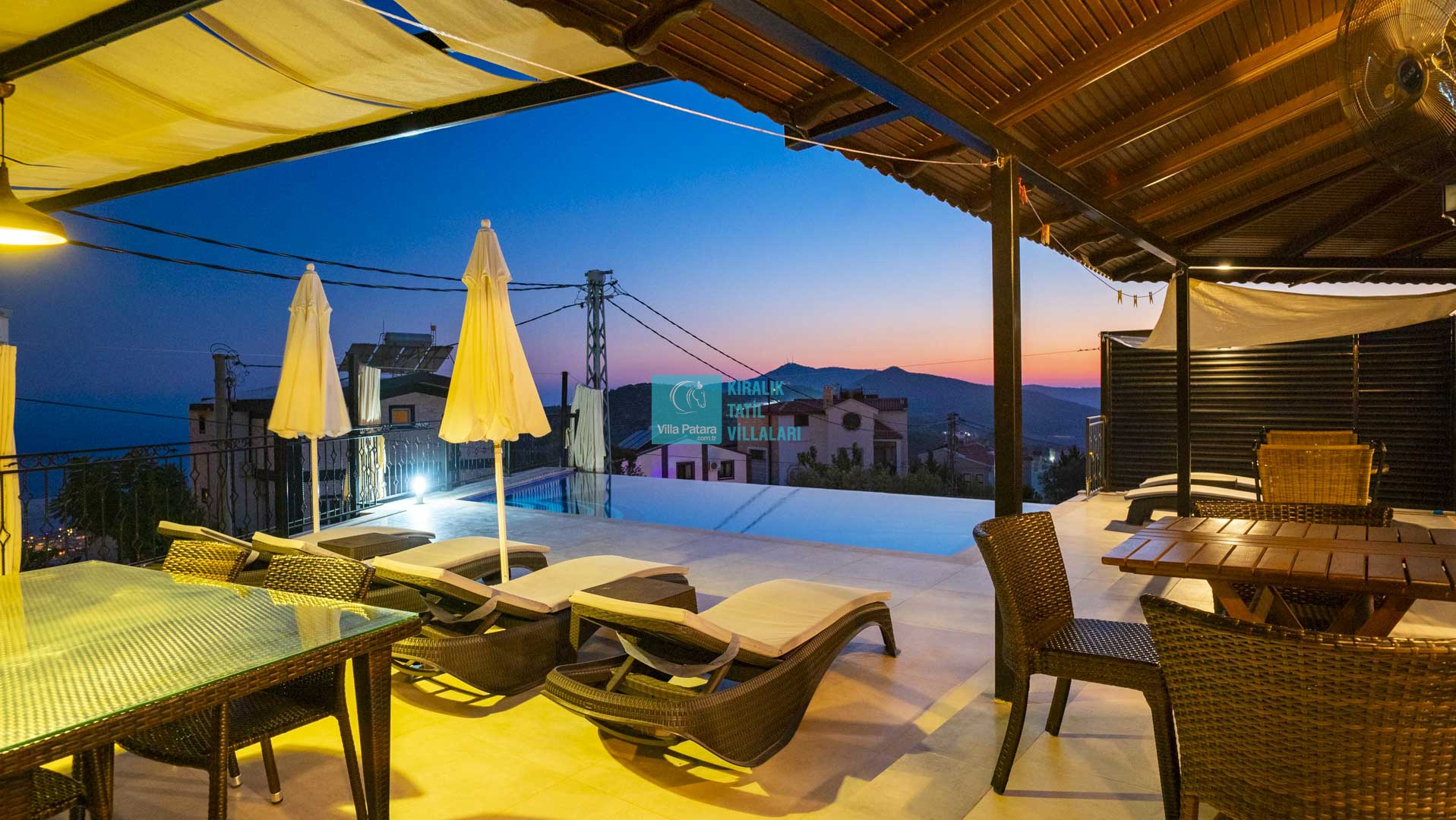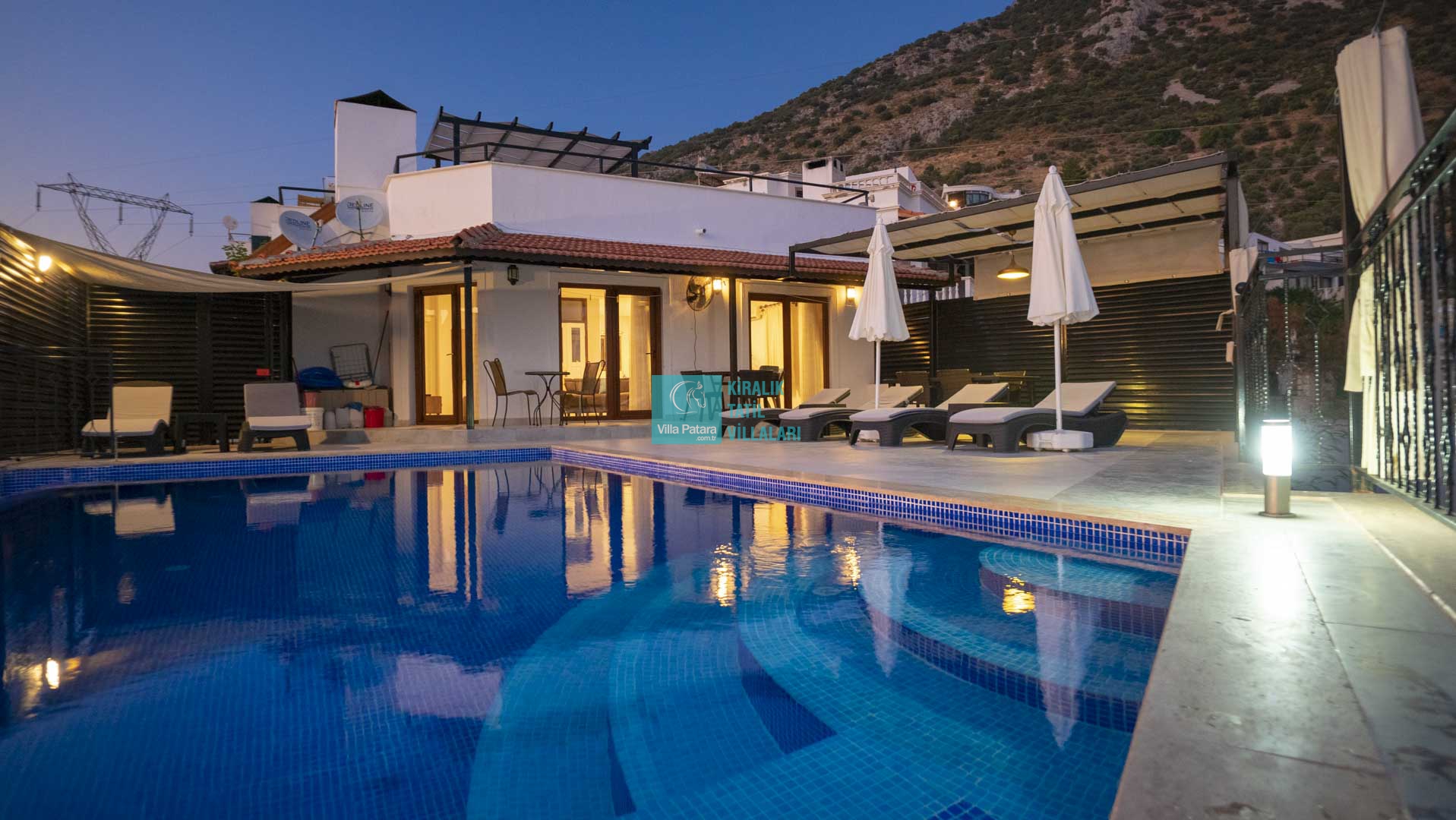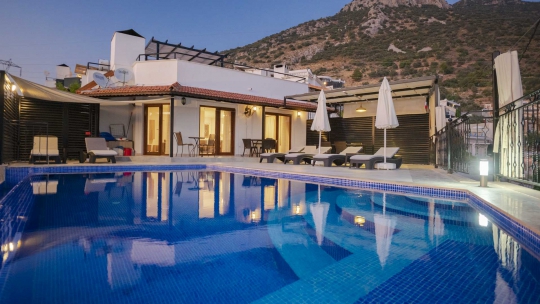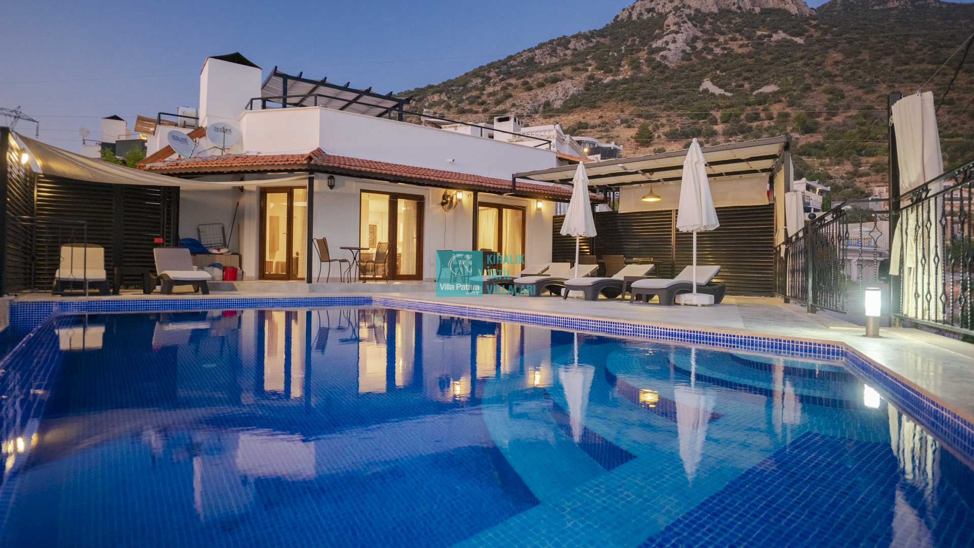Kiralık villamız, Kaş Kalkan Akbel mevkinde bulunan 4 yatak odalı 7 kişi kapasiteli bir tatil villasıdır. Müstakil villamız kalabalık gruplar ve aileler için oldukça geniş olmasının yanında harika bir de manzaraya sahiptir. Havuz terası kısmi korunaklı olmakla beraber muhafazakar misafirlerimizin havuz alanında kendilerine uygun sakınma paylarına dikkat etmeleri tavsiye edilir.