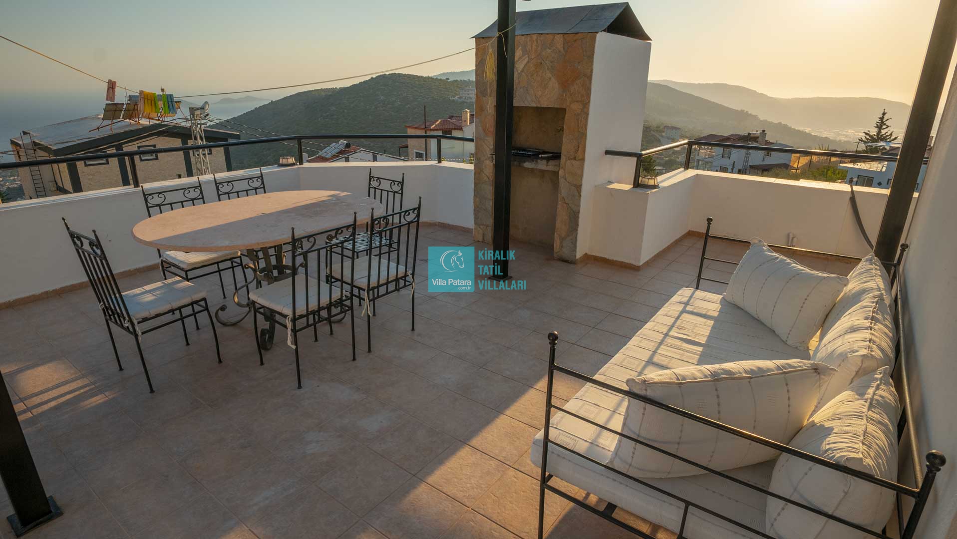 2. Teras: Barbekü alanı ve yemek masası yer almaktadır.