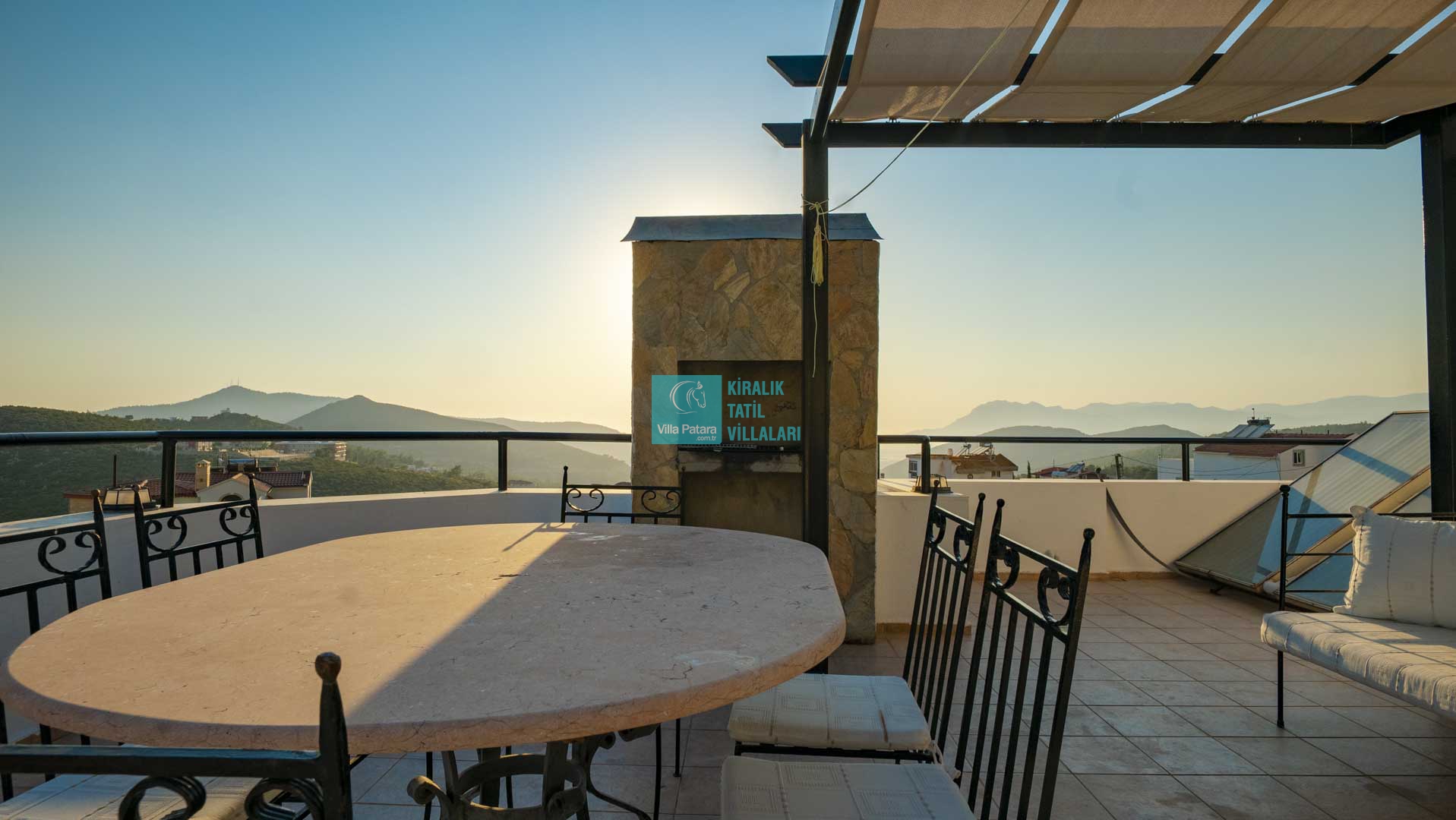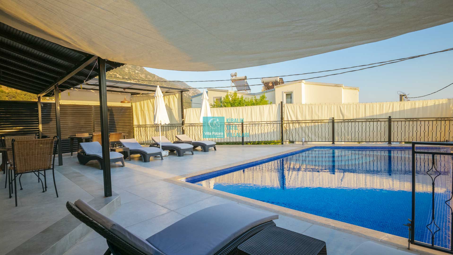 Havuz Terası: Villamızın terasın içerisinde özel yüzme havuzu, şezlong ve şemsiye ve pergole, yemek masası ve sandalyeler yer almaktadır.