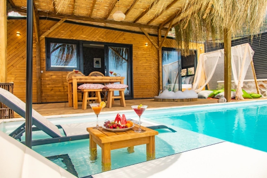 NOT: Havuzda yüzen meyve ve kahvaltı tepsisi 1 Haziran -30 eylül arasında istek üzerine ekstra ücret karşılığında villalara gönderilir.