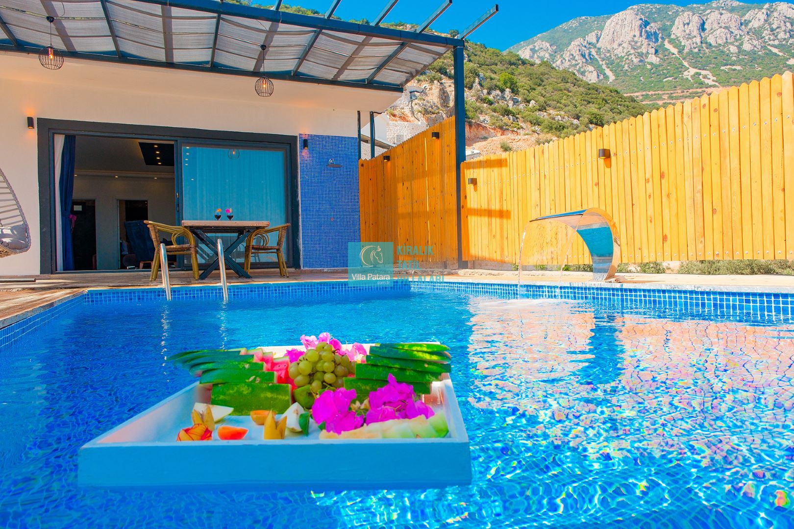 1-Mayıs - 31 Ekim 2024 tarihleri arasında kahvaltı dahildir. Havuzda yüzen meyve tepsisi 1-Mayıs - 31 Ekim 2024 tarihleri arasında villalara istek üzerine gönderilebilir ve ücreti 2000 TL'dir. Ücrete dahil olan kahvaltının villaya istenmesi durumunda ise 600 TL servis ücreti alınmaktadır.