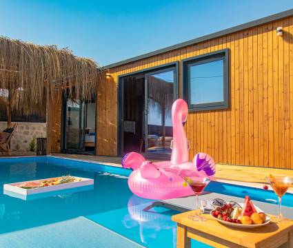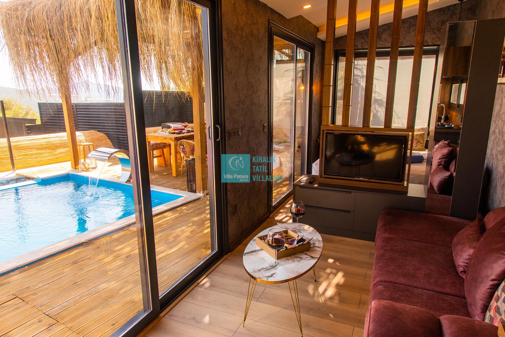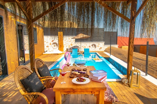 Story House Mavinin ve yeşilin en güzel tonlarının haiz olduğu bir ev. 2 kişi kapasitesi ile kaliteli şık ve eşsiz bir tatil yapmak isteyenler için doğru adres. Konsept tasarımı ve gözlerden uzak yapısıyla sizlere gönül rahatlığı ile tatil yapabilme imkânı sunan Story House'un içinde Dönen Televizyon, Masajlı Jakuzi, Salıncak, Sığ havuz, Barbekü, Teras masası, Panoramik Kalkan manzarası, Sonsuzluk havuzu da bulunmakta. Siz tatilinizi eşsiz şekilde yapmaya devam ederken tesisimizin size sunduğu sabah kahvaltısıda Story House'un içinde mevcuttur. Mutlu güvenilir şık bir tatil yapabilmeniz için Story House size kapılarını açıyor.Not: Tiny House Villalarımızda minimum konaklama süresi 3 gecedir. Welcome paketi ve hijyen seti ücretsiz konulmaktadır. 1-Mayıs - 31 Ekim 2024 tarihleri arasında kahvaltı dahildir. Havuzda yüzen meyve tepsisi 1-Mayıs - 31 Ekim 2024 tarihleri arasında villalara istek üzerine gönderilebilir ve ücreti 2000 TL'dir. Ücrete dahil olan kahvaltının villaya istenmesi durumunda ise 600 TL servis ücreti alınmaktadır.