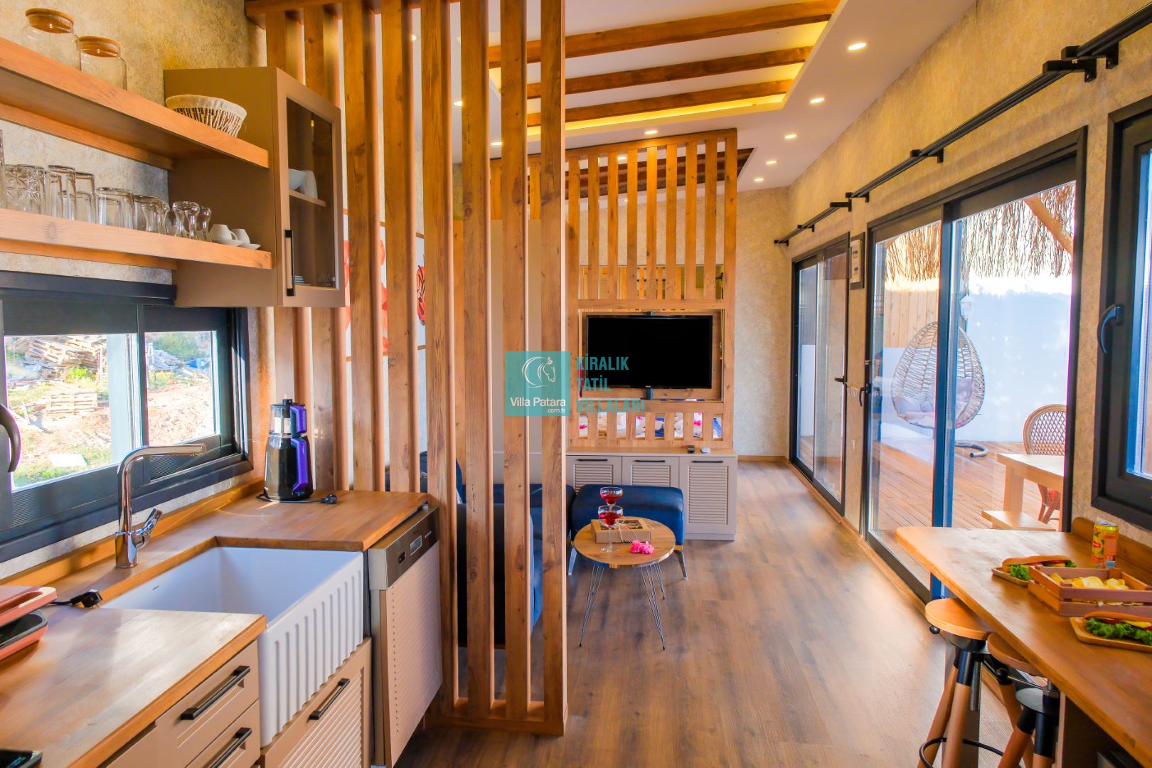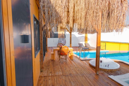 Sun House eşsiz deniz manzarasıyla size kapılarını açıyor. Huzurun ve rahatlığın zirvesine ulaşacağınız SunHouse sizin için özenle tasarlandı. Konsept tasarımı ve muhafazakârlığı ile sizlere muhteşem bir tatil imkânı sunan Sun House'un içinde Dönen televizyon, Salıncak, Sığ havuz, Barbekü, Teras manzarası, Panoramik Kalkan manzarası, Keyifle tatil yapabilmeniz için doğru adrestesiniz. SunHouse 1 yatak odasına sahiptir ve iki kişinin konaklayabileceği şekilde tasarlanmıştır. Modern ve şık dekore edilmiştir. Sun House da kendi evinizde gibi hissetmeniz için bütün imkânlar bulunmakta. Benzersiz bir tatil fırsatı için Sun House sizleri ağırlamak için bekliyor. Not: Tiny House Villalarımızda minimum konaklama süresi 3 gecedir. Welcome paketi ve hijyen seti ücretsiz konulmaktadır. 1-Mayıs - 31 Ekim 2024 tarihleri arasında kahvaltı dahildir. Havuzda yüzen meyve tepsisi 1-Mayıs - 31 Ekim 2024 tarihleri arasında villalara istek üzerine gönderilebilir ve ücreti 2000 TL'dir. Ücrete dahil olan kahvaltının villaya istenmesi durumunda ise 600 TL servis ücreti alınmaktadır.