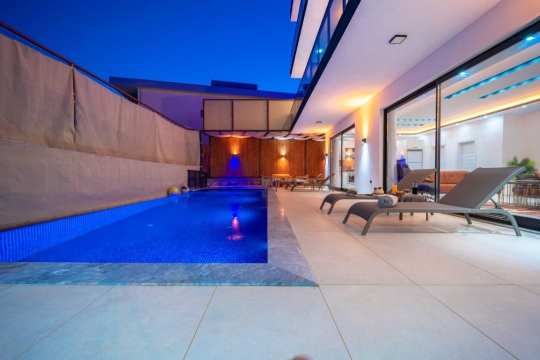 Villamızın balkonundan, Kalkan'ın eşsiz Deniz Manzarasını seyretme imkanını sizlere sunuyoruz. Ayrıca, hamam, sauna ve spor odası ile vücudunuzu ve zihninizi yenileme fırsatı sunuyoruz.