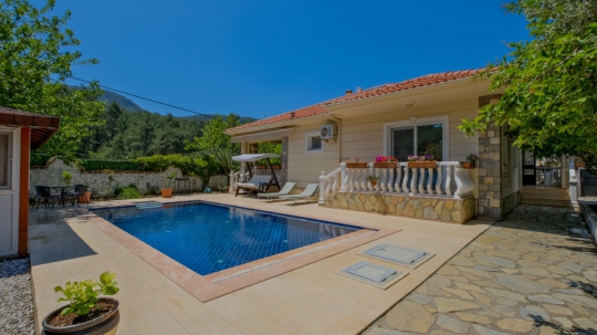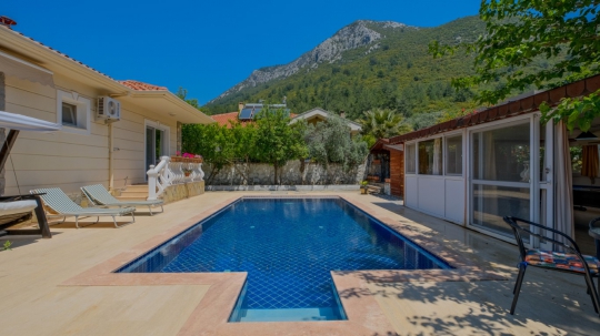 Villa Kaju, Muğla/Fethiye/Yeşil Üzümlü'de konumlu, 3 yatak odalı, 6 kişi konaklama kapasiteli, korunaklı havuzlu tatil villamızdır.