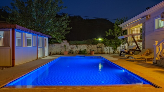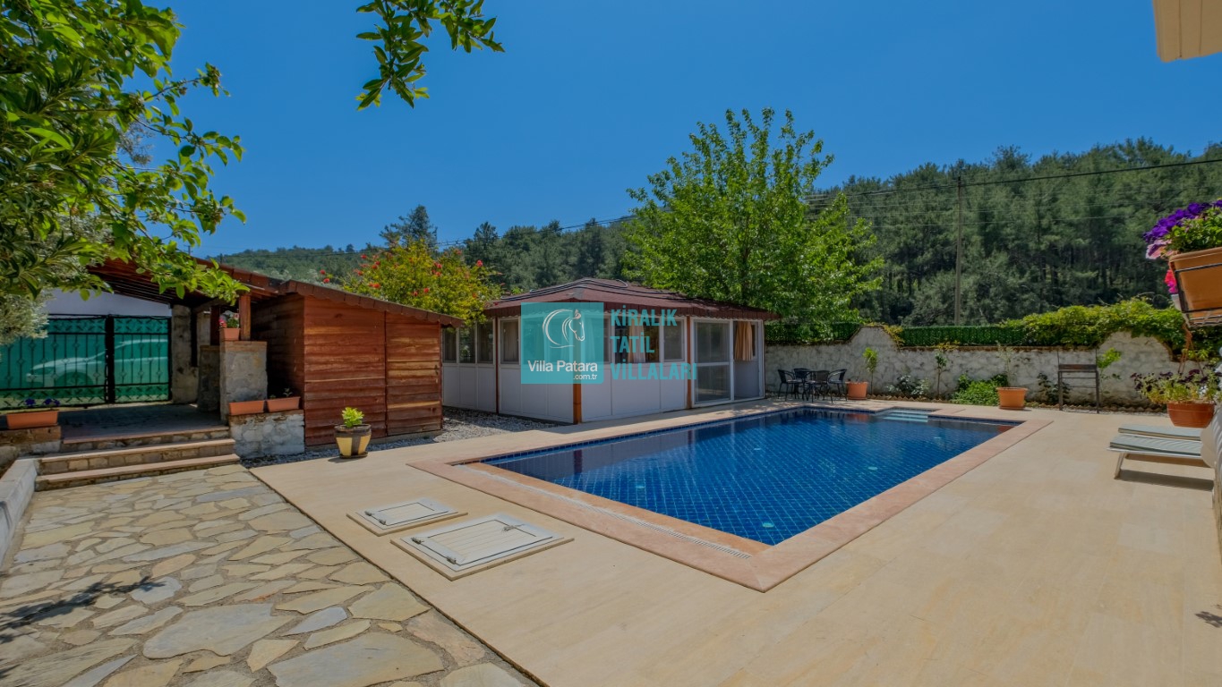 Havuz alanı doğal olarak korunaklı olan villamızın havuz alanı dışarıdan görünmemektedir.