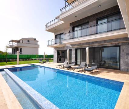 Tatil Cenneti Kaş - Kalkan bölgesinde, bölgeye hakim bir tepe üzerinde konumlanmış, merkezi konumda muhteşem deniz ve doğa manzarasına sahip bu lüks villamız, gözlerden uzak unutulmaz bir tatil tecrübesi için siz değerli misafirlerimizi bekliyor. Villamız standartların üzerinde ferah kullanım alanlarının yanı sıra, özel yüzme havuzu, kamera sistemi, özel bahçe, otopark alanı ve eşsiz deniz ve doğa manzarasına sahip tamamı suit 4 yatak odalı muhteşem bir villadır.