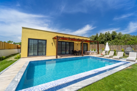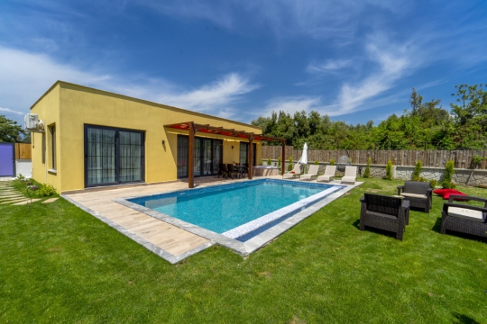 Havuz : Villamıza ait ebatları; 4 X 8 metre ve derinliği 1.50 metre olmak üzere özel yüzme havuzu bulunmaktadır. Havuz ve bahçe bakımı günde 1 kez sabah veya akşam yapılmaktadır. Havuz kenarında ise şezlong, bahçe oturma grubu, yemek masası, salıncak ve çocuk parkı bulunmaktadır.