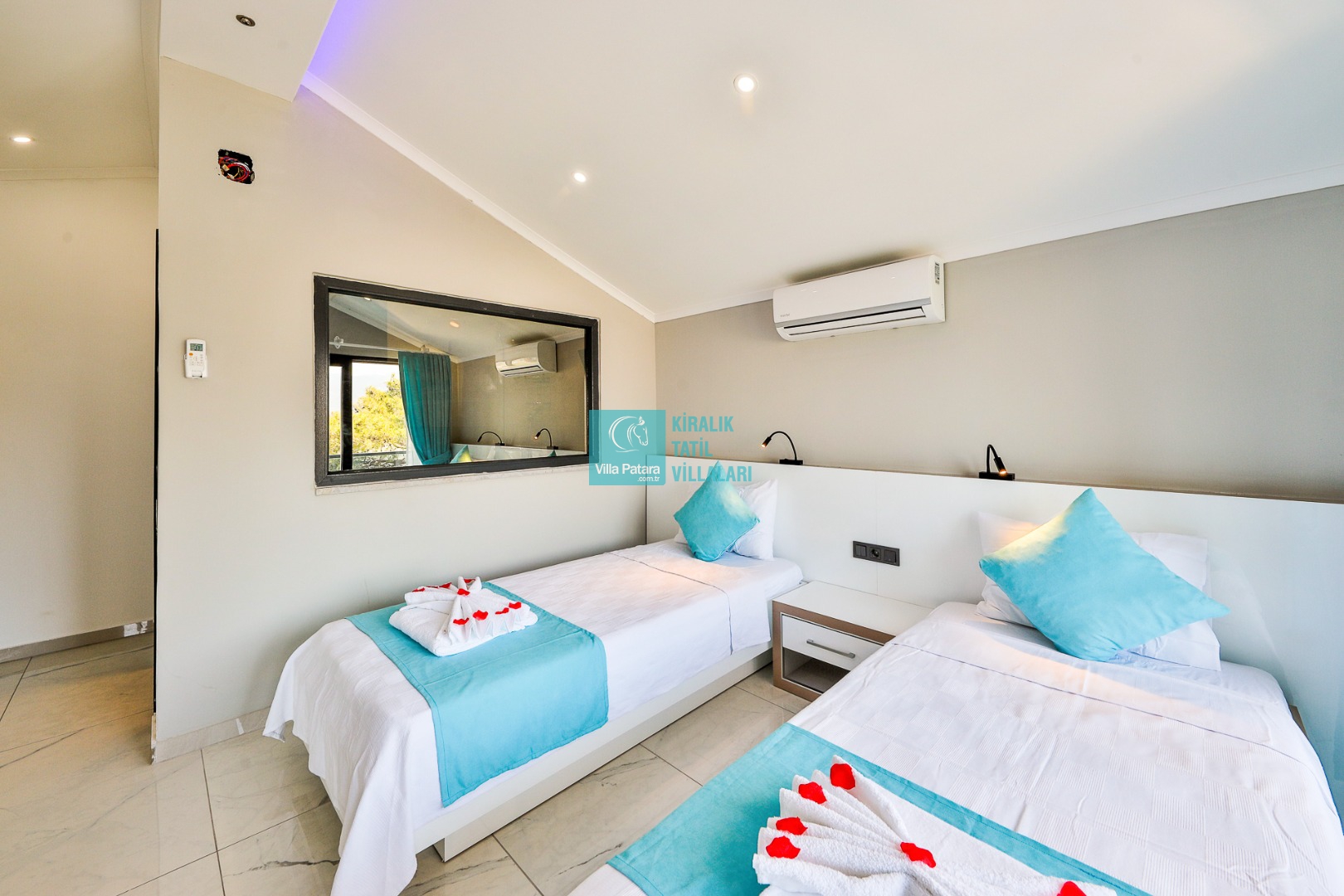2. Yatak Odası: 2 adet tek kişilik klima, komodin, jakuzi elbise dolabı, makyaj masası, banyo ve tuvalet bulunmaktadır.