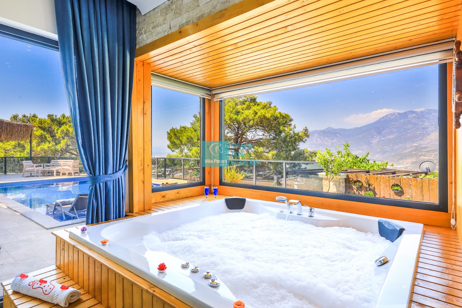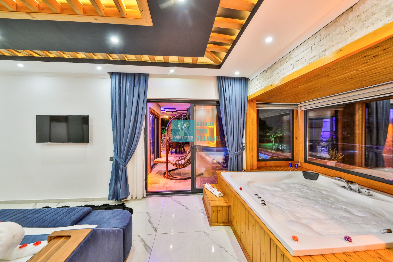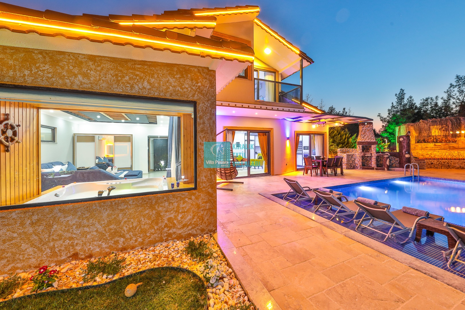 Villa Kapadokya Kalkan Yeşilköy bölgesinde yer almaktadır. 2 yatak odasına sahip tatil villamız 4 kişilik konaklama kapasitesine sahiptir. Doğa içinde bir konuma sahip olan tatil villamızın her iki yatak odasında jakuzi bulunmaktadır. Havuz alanı sizlere keyifli bir tatil ortamı sunmaktadır. Balayı çiftleri ve çekirdek aileler için ideal bir seçenek olan muhafazakar hassasiyete sahip misafirlerimiz içinde uygun bir tatil ortamı sunmaktadır.