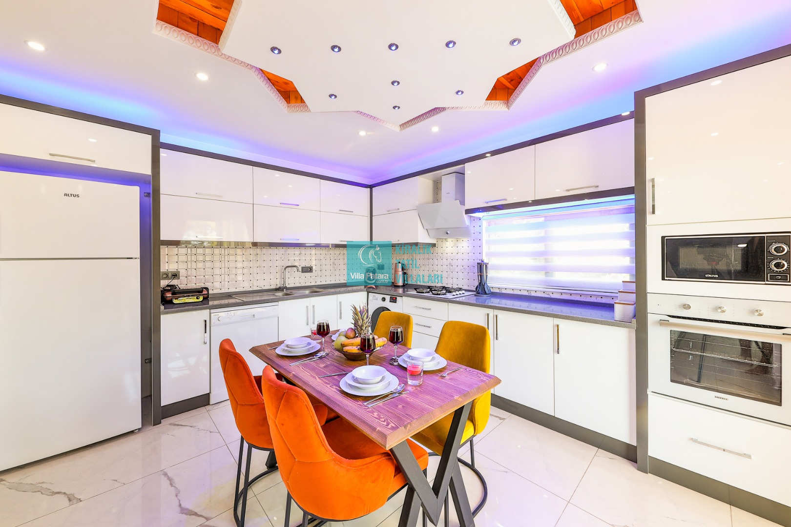 Mutfak: Villamızın mutfağında buzdolabı bulaşık makinası, çamaşır makinası, 4'lü ocak, kettle, mikro dalga fırın, filtre kahve makinası yemek takımı bulunmaktadır.