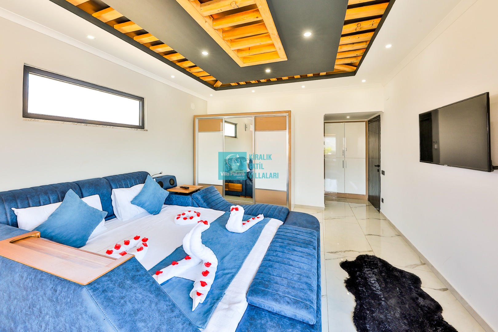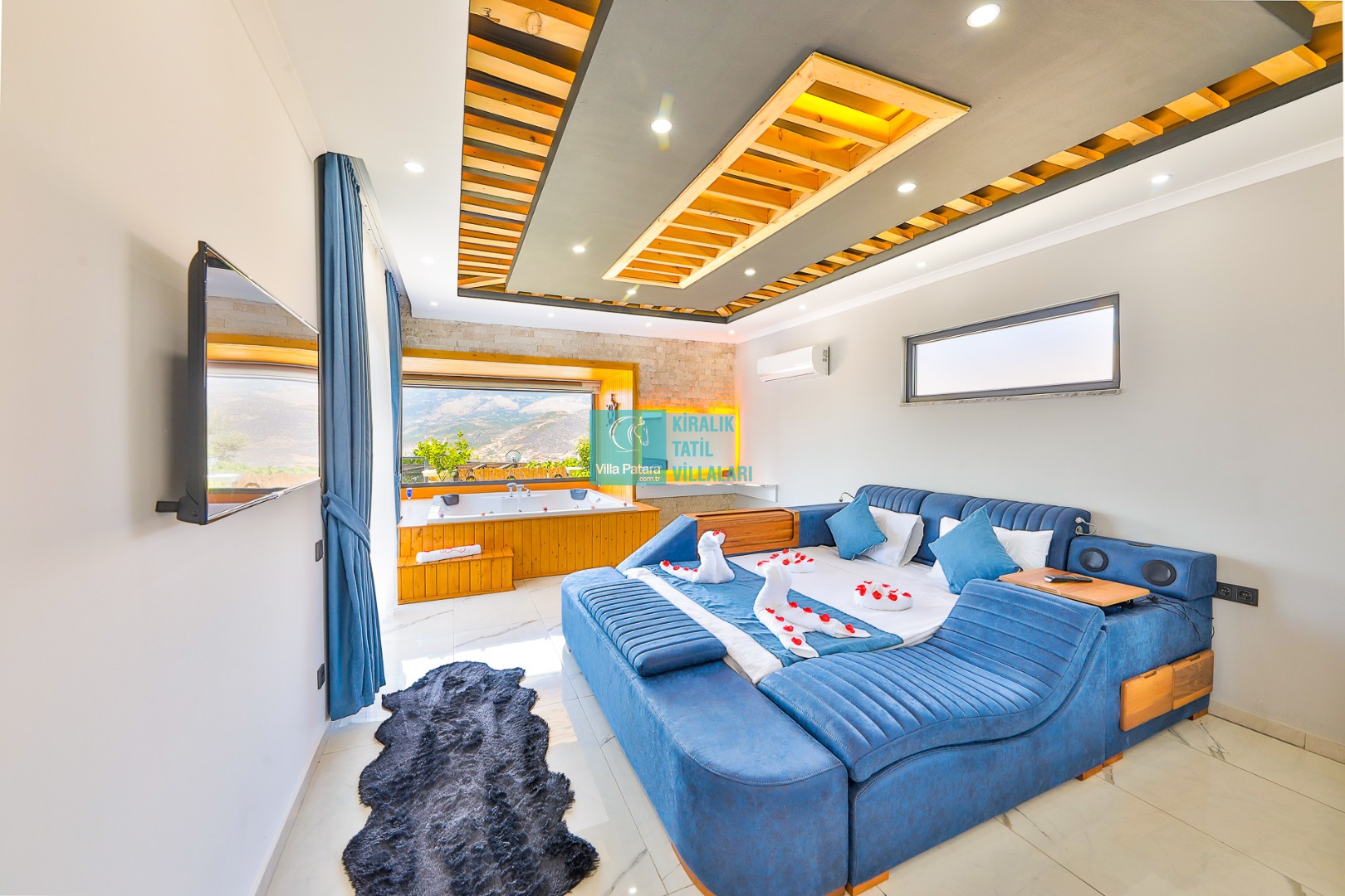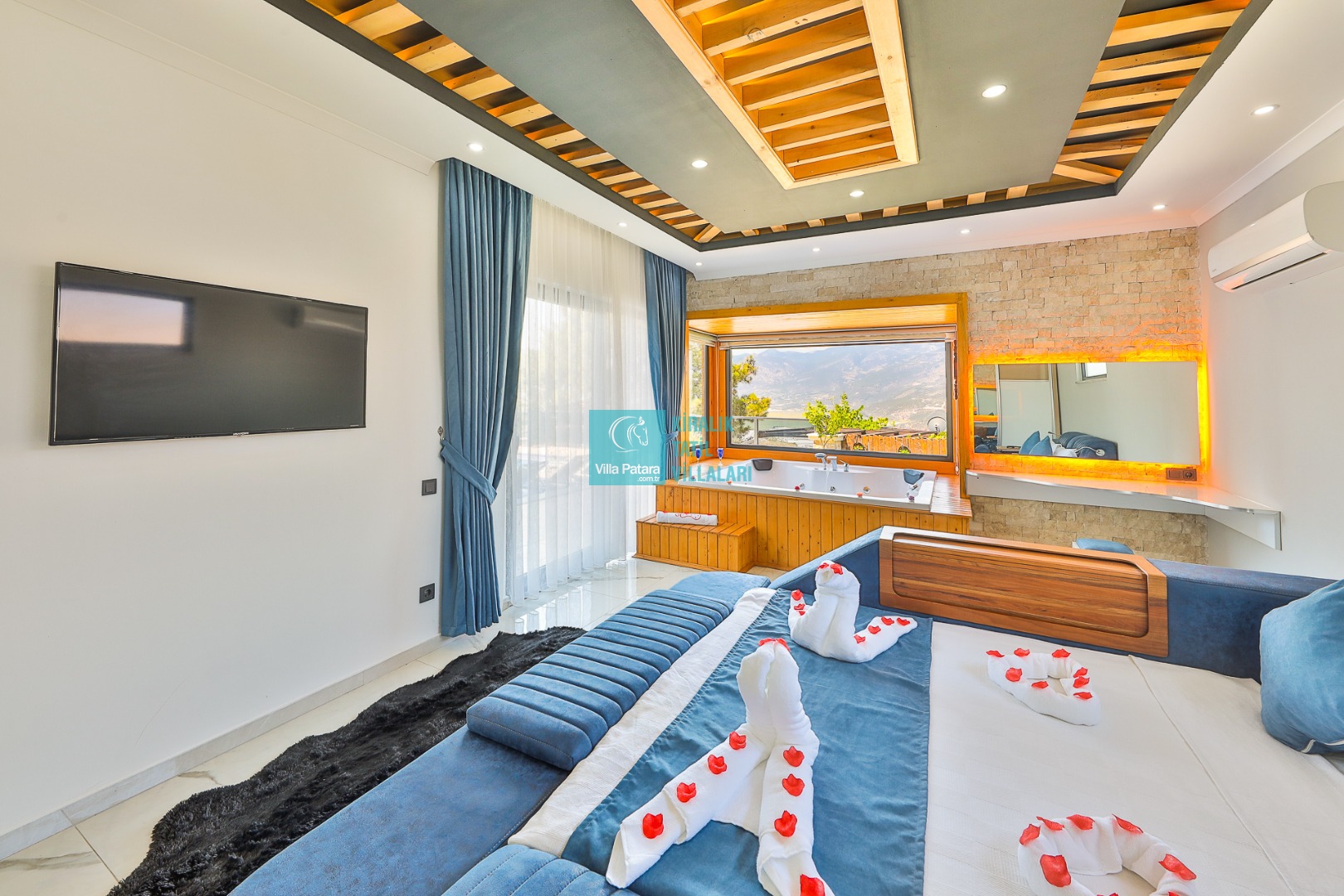 1. Yatak Odası: Çift kişilik yatak, klima, jakuzi, komodin, elbise dolabı, makyaj masası, banyo ve tuvalet bulunmaktadır.