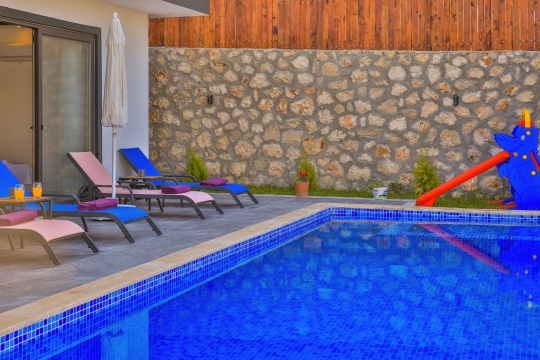 Kalkan Patara'da bulunan kiralık villamız Villa Karaman 2 Yatak odalı ve 4 kişi kapasitelidir. Balayı çiftleri için ideal seçeneklerden olan villamız balayı villası olarak da kriterlenmektedir. Lüks ve modern eşyalarla donatılmış olan villamız doğa içerisinde konumlandırılmış olup doğa manzarasına sahiptir. Özel havuza sahip olan villamızın havuz terası korunaklıdır. Yabancı gözlerden uzak olan villamızda muhafazakar villa arayan çiftler, aileler ve arkadaşlar gönül rahatlığı ile bu villamızı tercih edebilir. Bütün odaları havuz terasına açılan villamızın ebeveyn yatak odasında jakuzisi bulunmaktadır. Amerikan mutfak-salonunda ise misafirlermizin ihtiyaç duyabilecekleri birçok şey düşünülmüştür. Küçük bahçe alanında bulunan oyun parkı ve havuzunda ki çocuk havuzu ile minik misafirlerimizde keyifli bir tatil geçirebilirler.