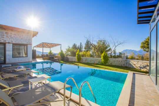 Villa Karapınar, Kalkan Üzümlü bölgesinde yer alan 3 yatak odalı 6 kişilik kapasiteye sahip kiralık villadır. Panoramik Patara Plajı ve doğa manzarasına sahiptir. Aile süit yatak odalarında jakuziler yer almaktadır ve özel banyosu mevcuttur. Kapalı ısıtmalı havuz olanağıyla kış aylarında da rahatlıkla kullanılabilir. Geniş bahçe ve teras alanı sayesinde aile ve arkadaş gruplarına ferah ve rahat bir tatil olanağı sunmaktadır. Doğa ile iç içe olan villamız konforlu ve modern olarak dizayn edilmiştir.