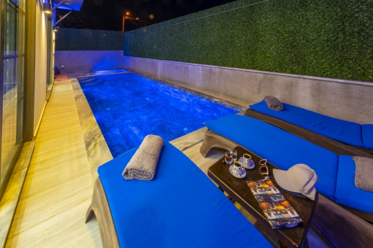 3 yatak odası ile 6 kişiye kadar konaklama imkanı sunan villamızda, korunaklı havuz ve dışarıdan görünmeyen bahçe sayesinde mahremiyetinize önem verebilirsiniz. Aileler için ideal bir tatil imkanı sunan villamızda, ebeveyn yatak odasında 2 kişilik jakuzi, hamam ve sauna da bulunmaktadır.