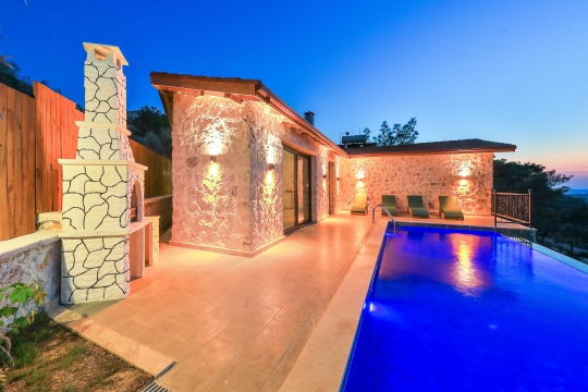 Kalkan Patara Mevkiinde bulunan villamız Muhafazakar villalar ve Balayı Vilları kategorisinde yer alıyor, 2 yatak odası ile 4 kişilik konaklama kapasitesine sahiptir. Havuzu korunaklı ve bahçesi dışarıdan görünmeyen villamız mahremiyete önem veren çiftler ve Aileler için huzur dolu bir tatil fırsatı sunuyor. Villamız patara plajı manzaralı olup gün batımı manzarasını net bir şekilde izleyebileceğiniz güzel bir konumda yer almaktadır, Ayrıca Villamızın ebeveyn yatak odasında'da 2 kişilik jakuzi yer almaktadır.