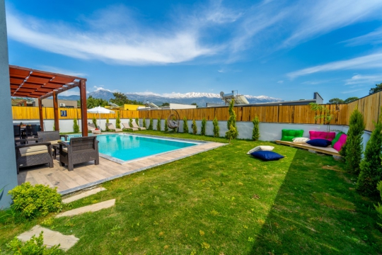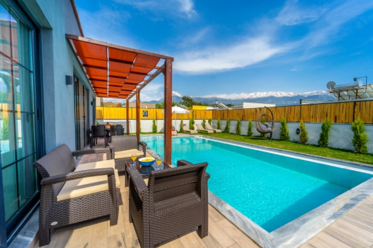 Havuz : Villamıza ait ebatları; 4 X 8 metre ve derinliği 1.50 metre olmak üzere özel yüzme havuzu bulunmaktadır. Havuz ve bahçe bakımı günde 1 kez sabah veya akşam yapılmaktadır. Havuz kenarında ise şezlong, bahçe oturma grubu, yemek masası, salıncak ve çocuk parkı bulunmaktadır.