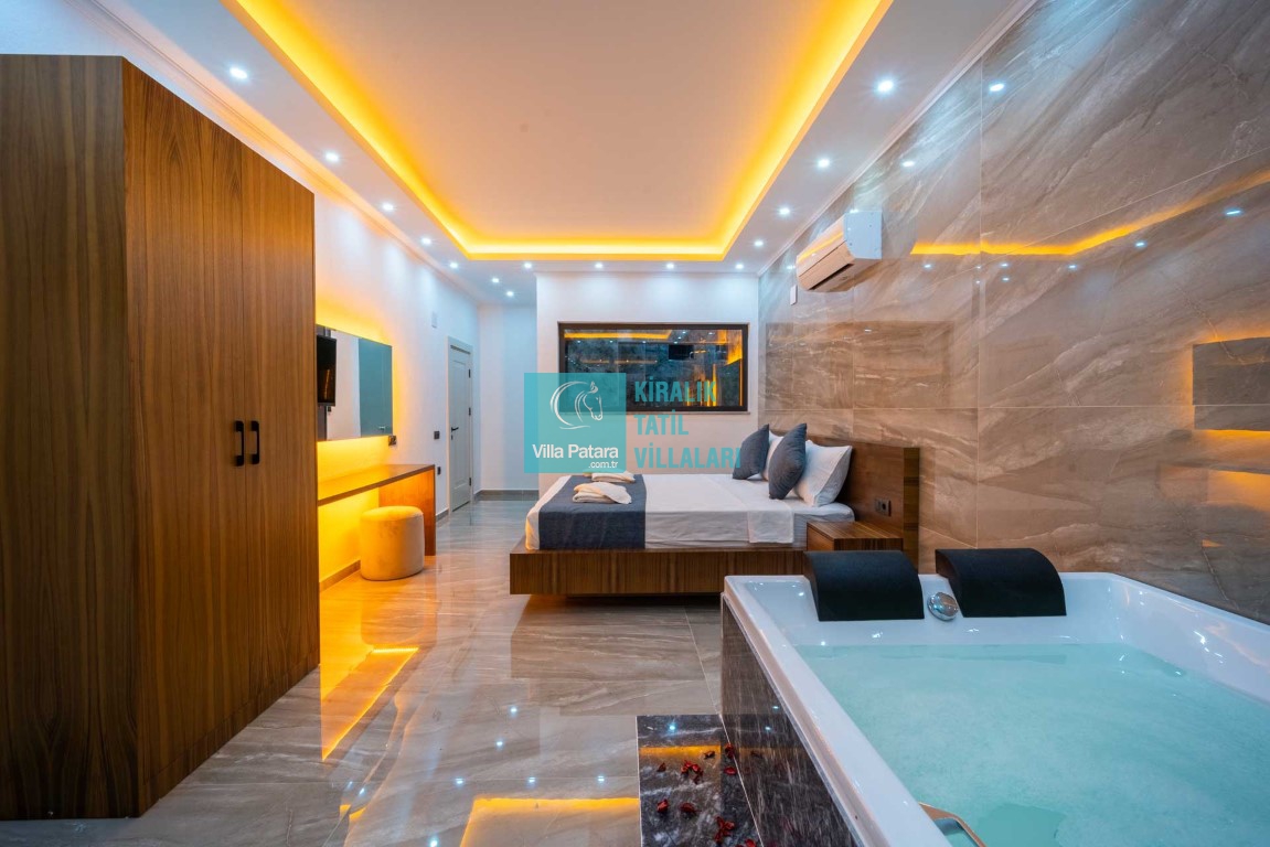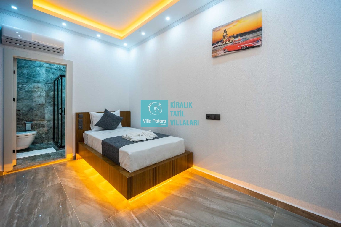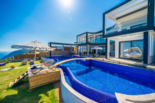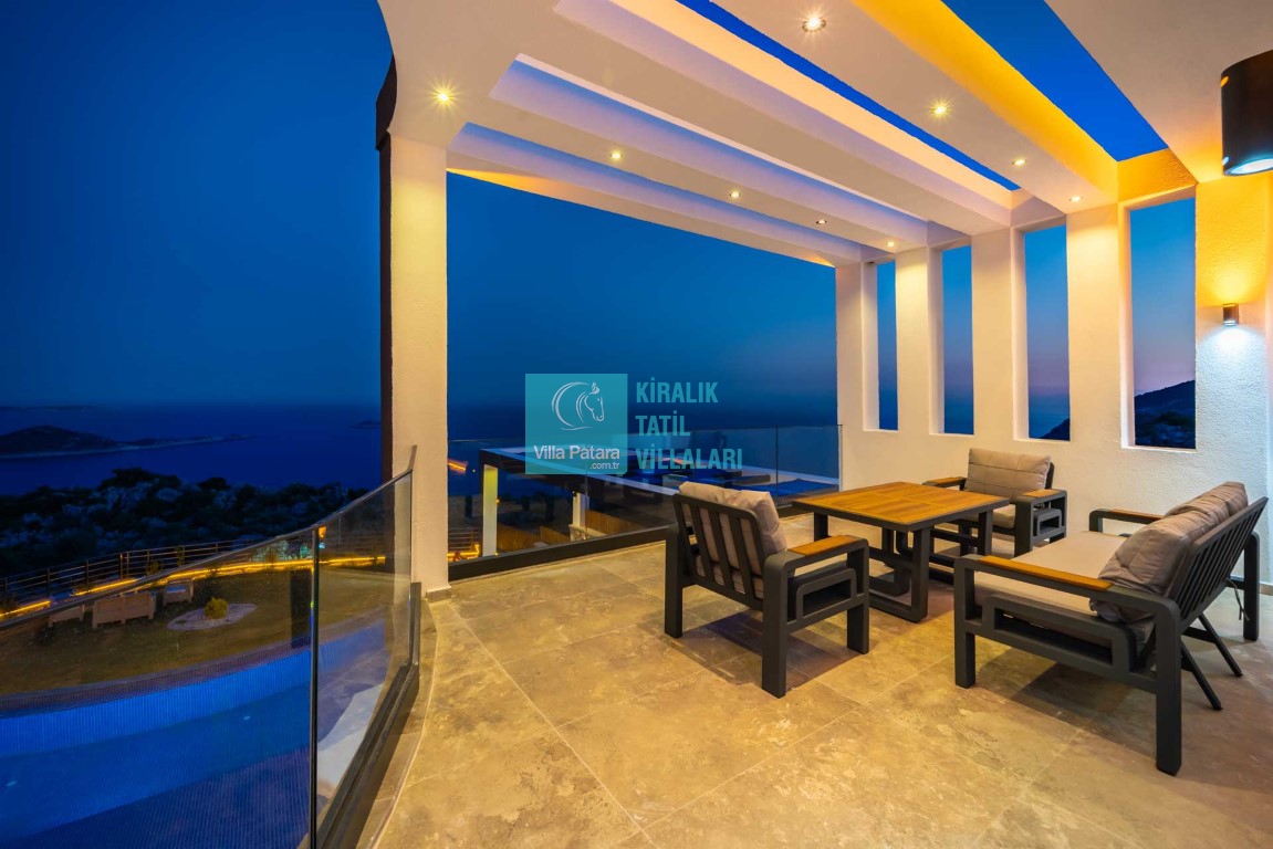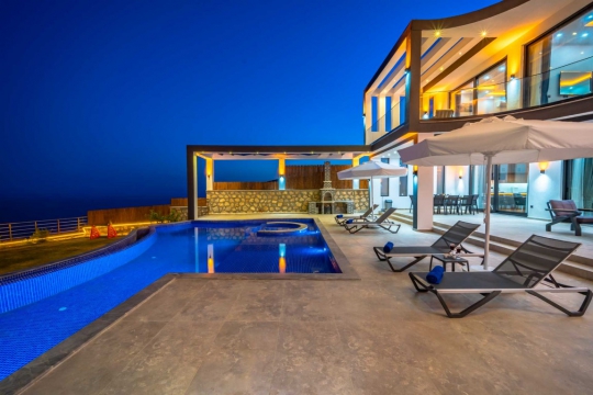 Kalkan Ulugöl bölgesinde bulunan 9 kişilik misafir ağırlama kapasitesi ile kalabalık aileler ve arkadaş grupları için ideal seçim olan, 5 yatak odalı villamız siz misafirlerini ağırlamaya hazır. Kalkan'da Lüks Villa Tatili arayışında olan misafirlerimiz için konfor ve şıklığın bir arada olduğu Villa Kenan'da Eşsiz Deniz ve Adalar manzarası eşliğinde keyifli bir tatilin tam zamanı.. Kesintisiz Deniz Manzarasına sahip olan villamız sizlere villa içerisinde ayrıcalıklar sunmaktadır. Sauna, Hamam, Çift Jakuzi ve Kapalı Isıtma havuzuna ve dış havuz içerisinde jakuziye sahip olmasının yanı sıra keyifli dakikalar geçirebileceğiniz bahçe alanı masa tenisi ve langırt ile sizler çocuk oyun alanı çocuklarınızın tatilini doyasıya geçirmesi için özenle hazırlanmıştır.