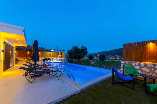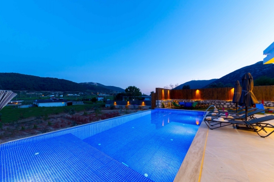 Kalkan Sarıbelen mevkisinde bulunan kiralık balayı villası, doğa içinde sessiz sakin bir konumda tatil isteyen ailelerimiz için oldukça uygun bir seçenektir. Muhafazakar villalar ve jakuzili villalar kategorisinde yer alan villamız, 2 yatak odası ile 5 kişilik konaklama kapasitesine sahiptir. Havuzu korunaklı ve bahçesi dışarıdan görünmeyen Villa Kerem Duo, mahremiyete önem veren ailelerimiz için huzur dolu bir tatil fırsatı sunuyor. Ayrıca villamızda misafirlerimizin rahatlaması için 2 kişilik jakuzi konforu da sağlamaktadır.