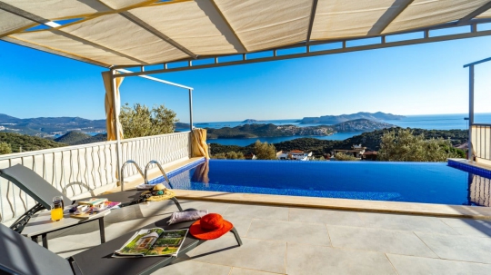Villamız Kaş gökseki bölgesinde 1 yatak odası ile 2 kişilik konaklama kapasitesine sahiptir. Doğa içinde bir konuma sahip olan tatil villamız aynı zamanda deniz ve adalar manzaralı olup, geniş havuz terası alanı ile sizlere keyifli bir tatil ortamı sunmaktadır. Balayı çiftleri için ideal bir seçenek olan villamızın havuz alanı korunaklı olup islami hassasiyete sahip misafirlerimiz içinde uygun bir tatil ortamı sunmaktadır. Konumu itibari ile kaş merkeze yakın olup en yakın plaja 500 mt uzaklıktadır.