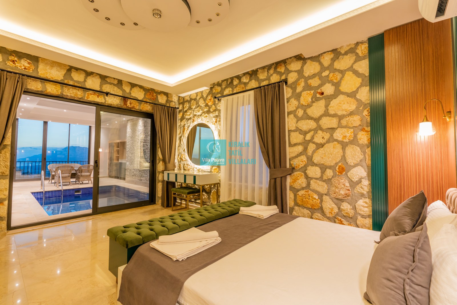 Kalkan Patara mevkisinde bulunan kiralık balayı villası, sessizliğin, huzurun hakim olduğu bir villada tatil isteyen çiftlerimiz için oldukça uygun bir seçenektir. Muhafazakar villalar ve balayı villaları kategorisinde yer alan villamız, 2 yatak odası ile 4 kişilik konaklama kapasitesine sahiptir. Havuzu korunaklı ve bahçesi dışarıdan görünmeyen Villa Kızıl Deniz, mahremiyete önem veren çiftlerimiz için huzur dolu bir tatil fırsatı sunuyor. Ayrıca villamız da kapalı ısıtmalı havuz sistemi bulunmaktadır.